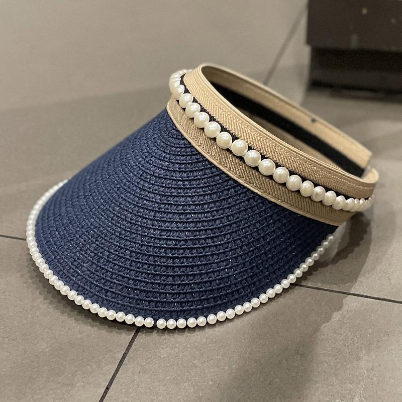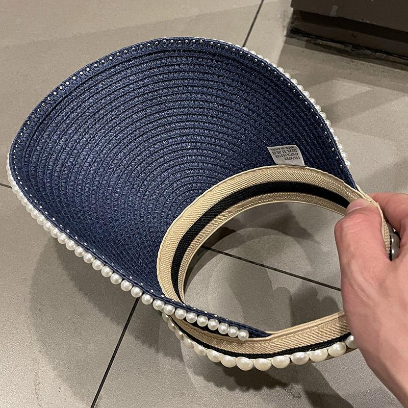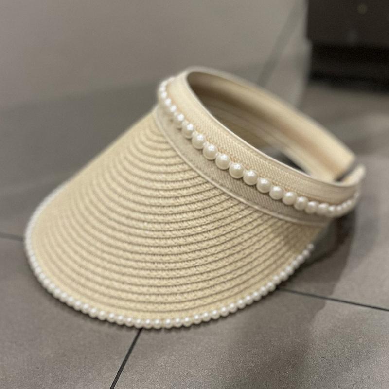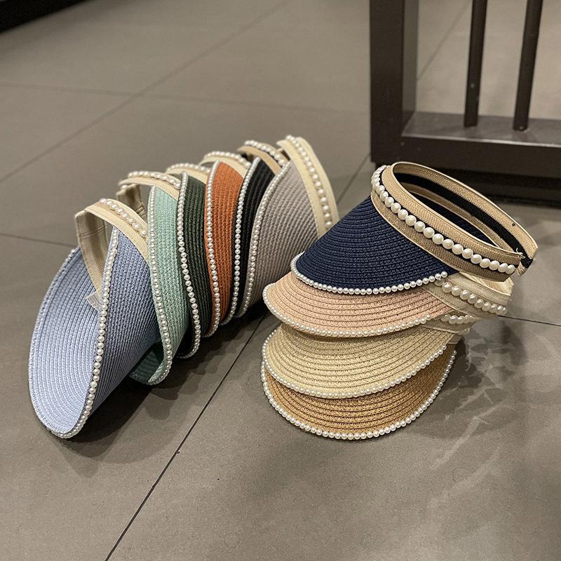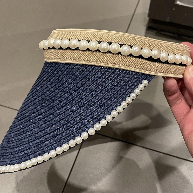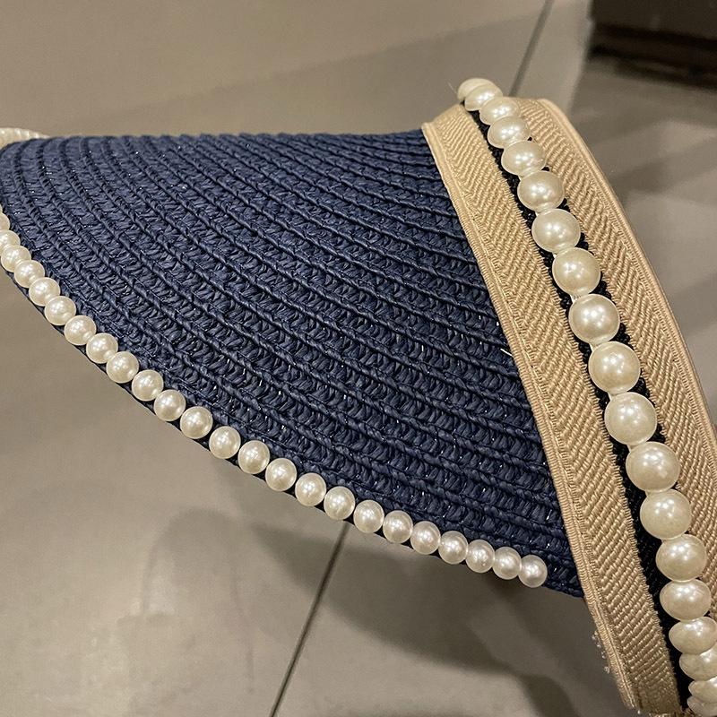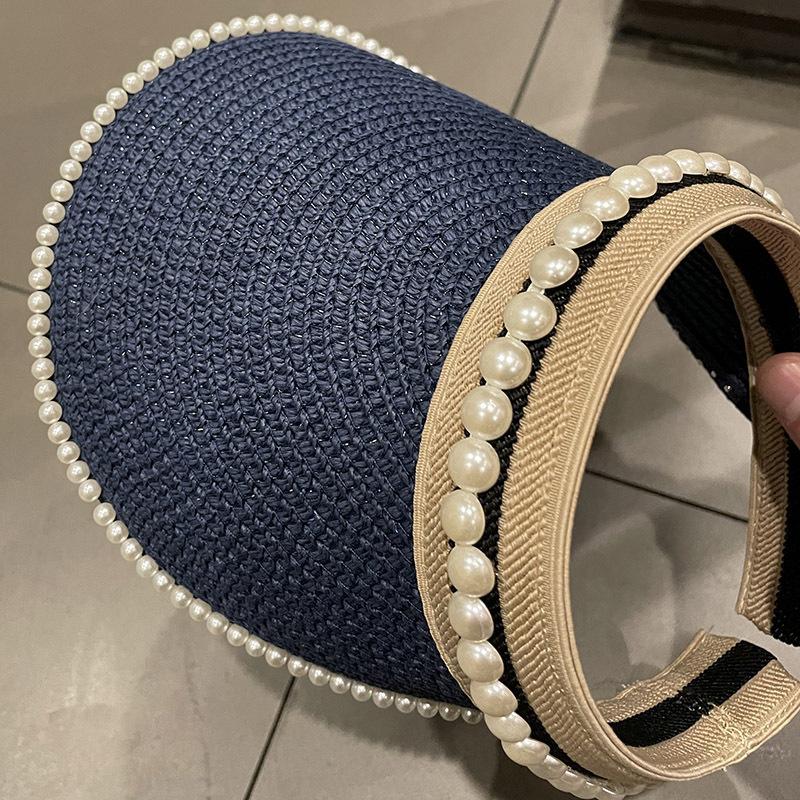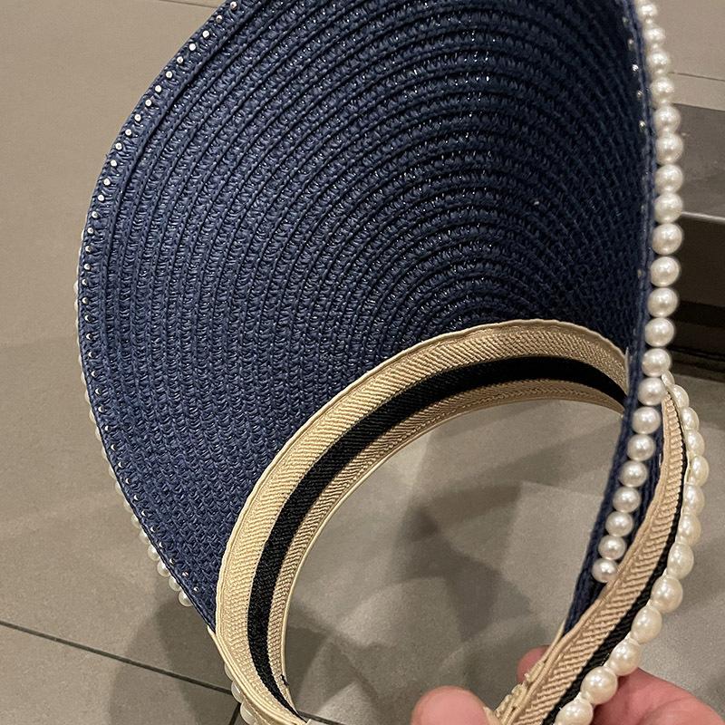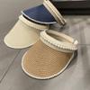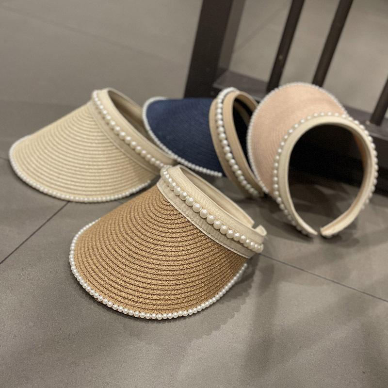 Sombrero Vacío Estilo Coreano para Mujer Ins Simple Paja Viaje Perla Primavera y Verano Moda Combinable Sombrero para el Sol Diadema Sombrero para el Sol