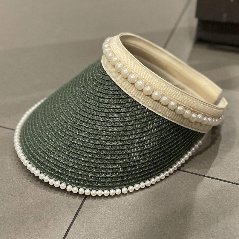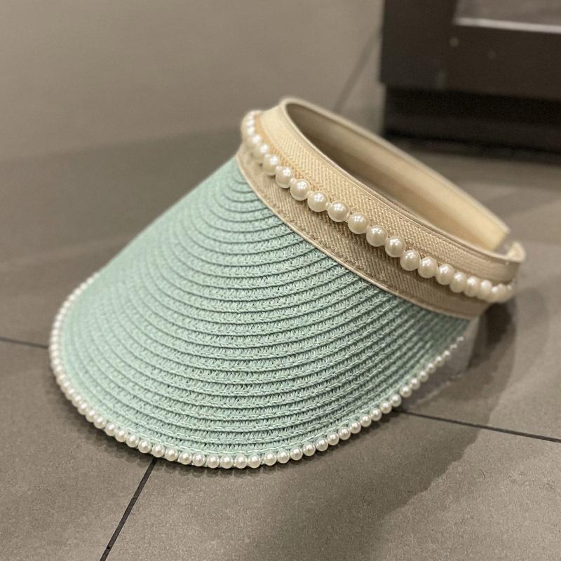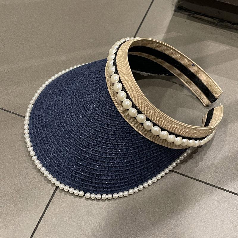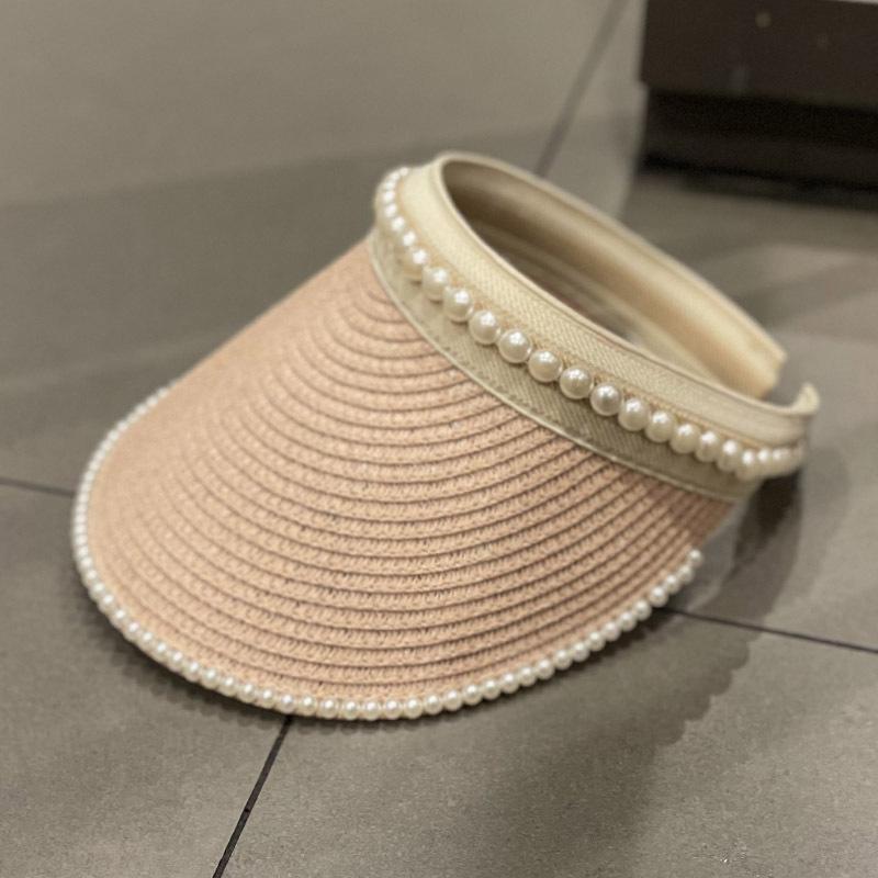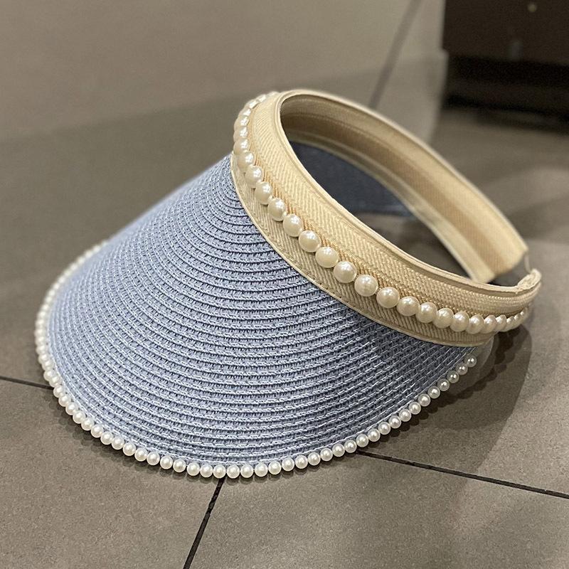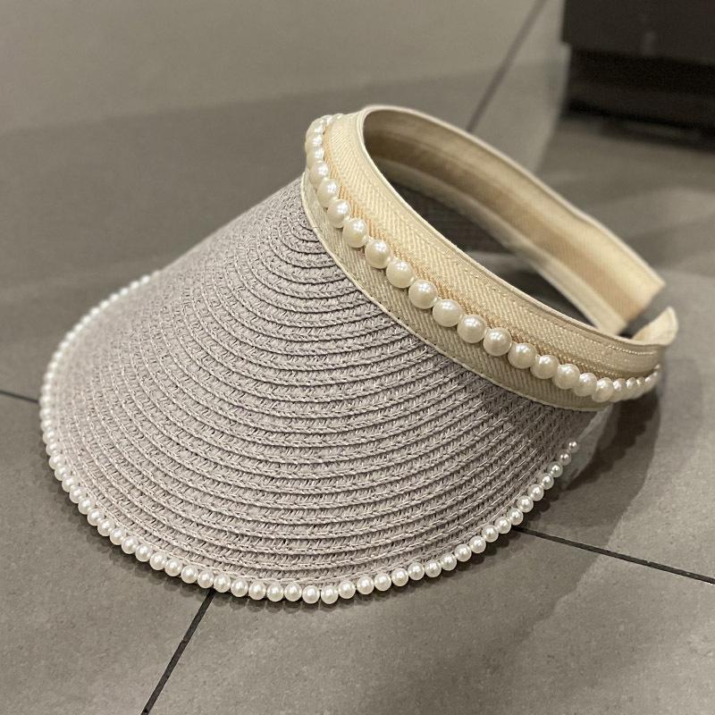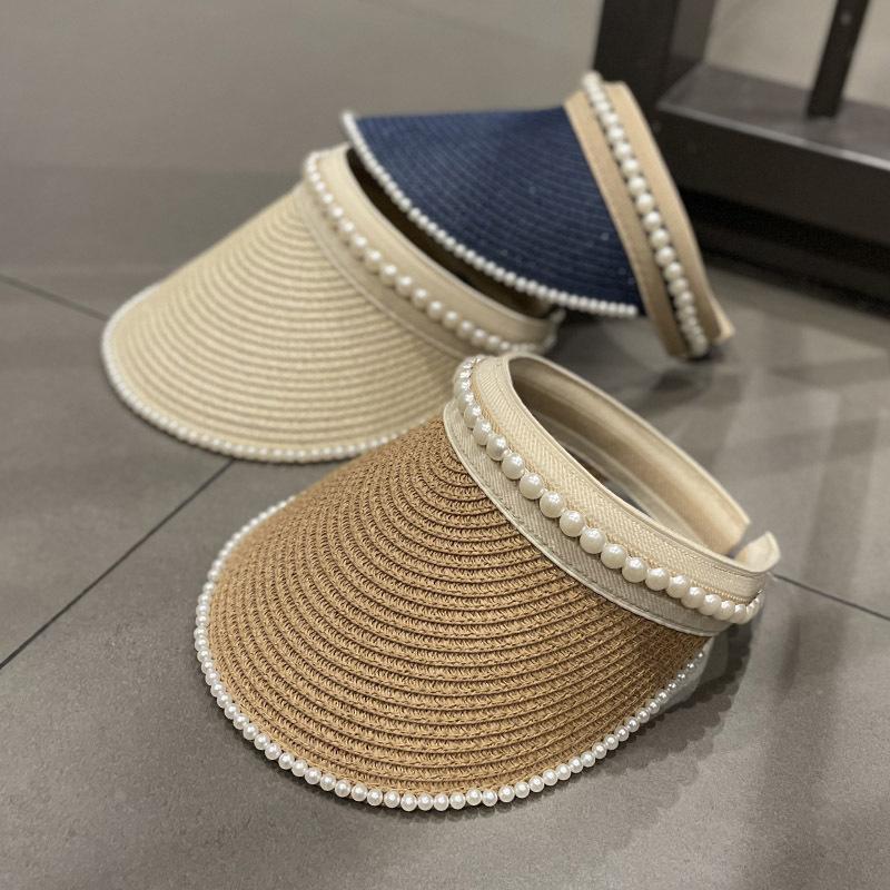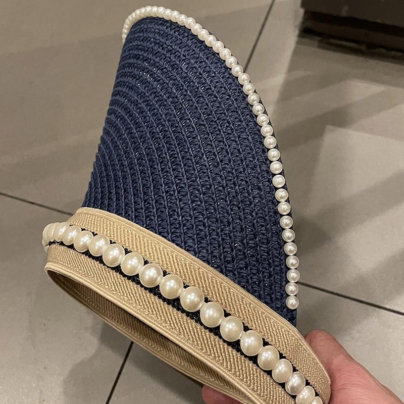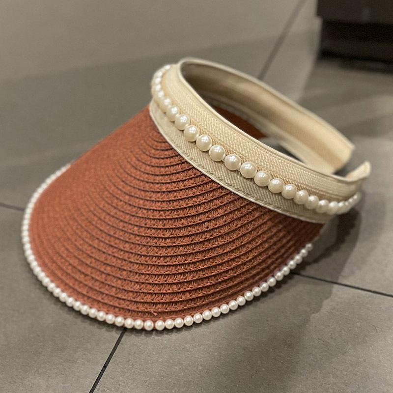 Sombrero Vacío Estilo Coreano para Mujer Ins Simple Paja Viaje Perla Primavera y Verano Moda Combinable Sombrero para el Sol Diadema Sombrero para el Sol