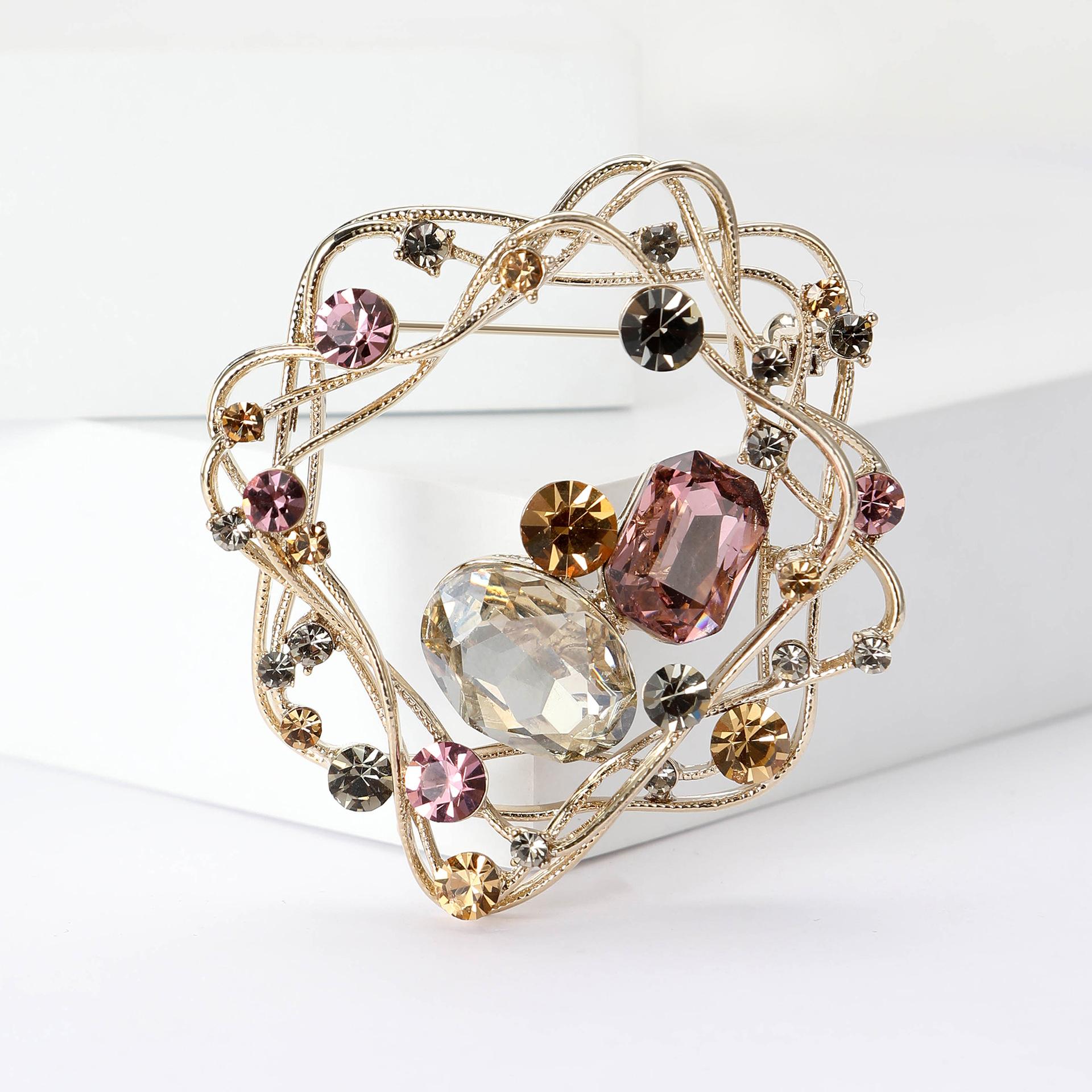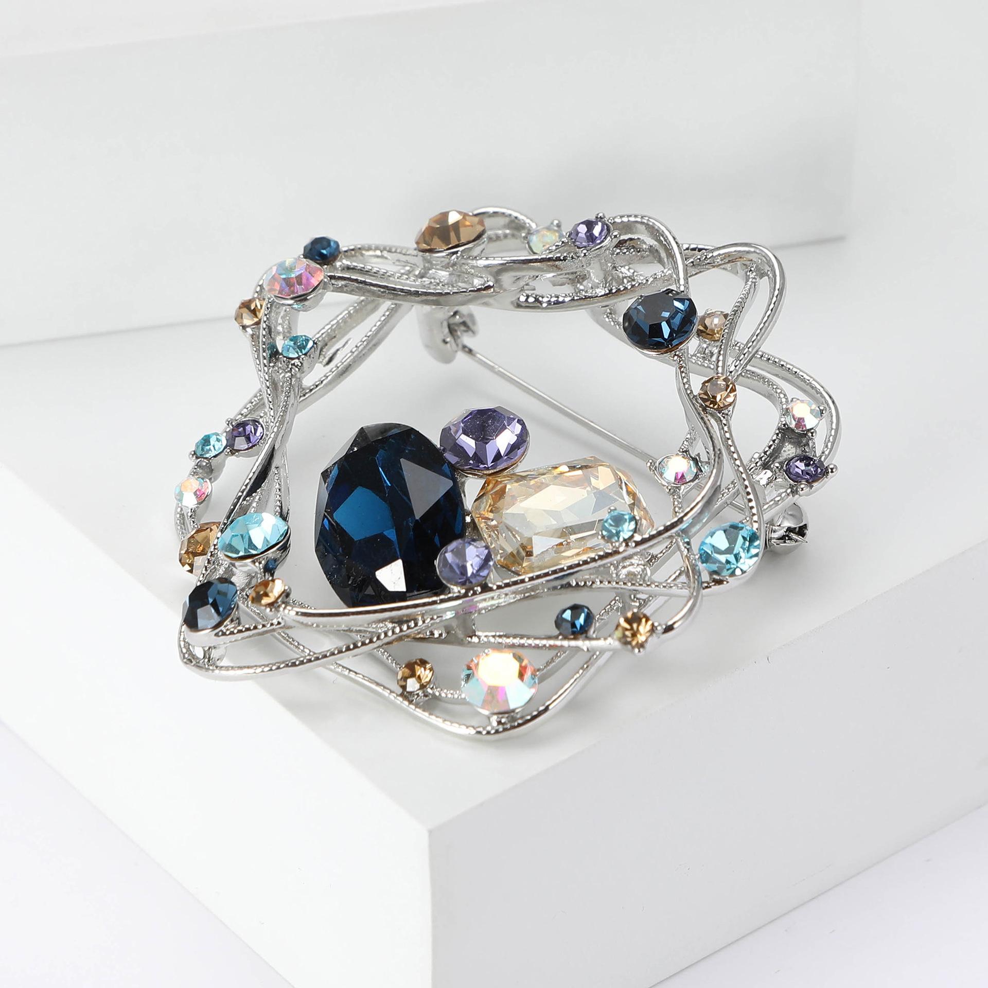Broche de nido de pájaro geométrico con diseño de espiral, de alta gama, con diamantes de imitación, accesorios de ropa para mujer, ramillete.