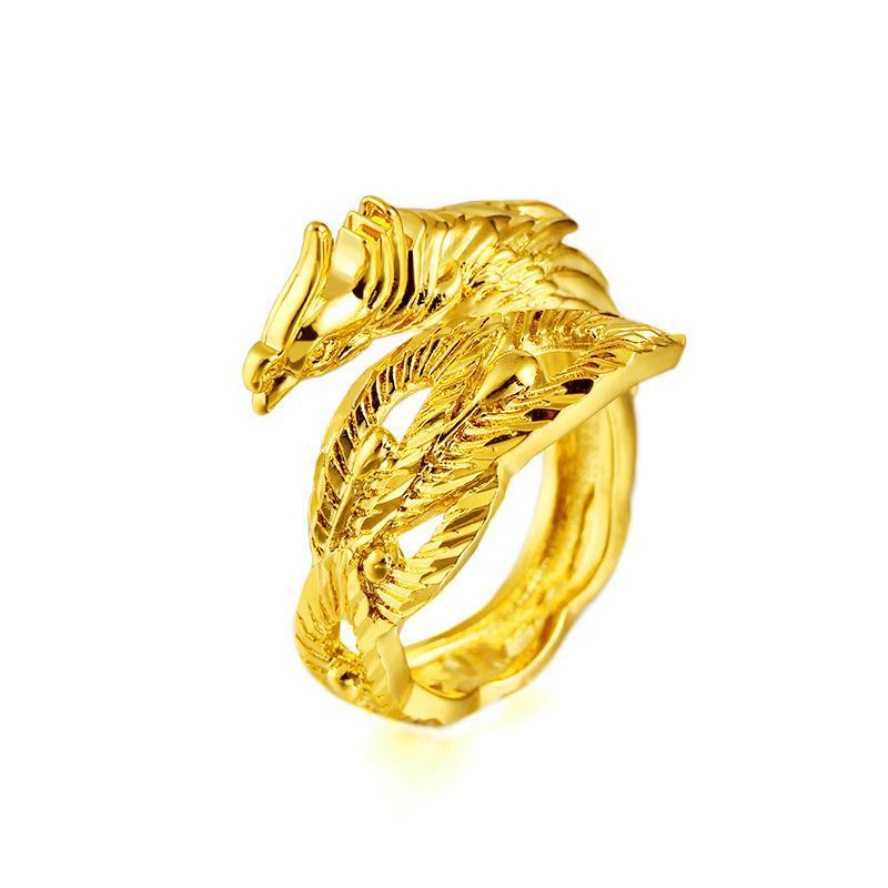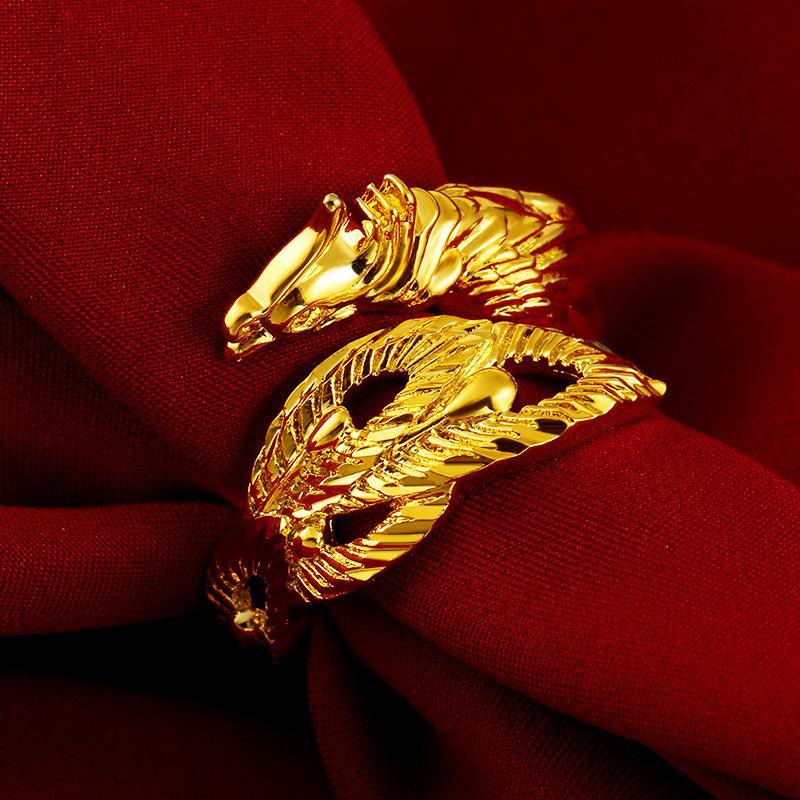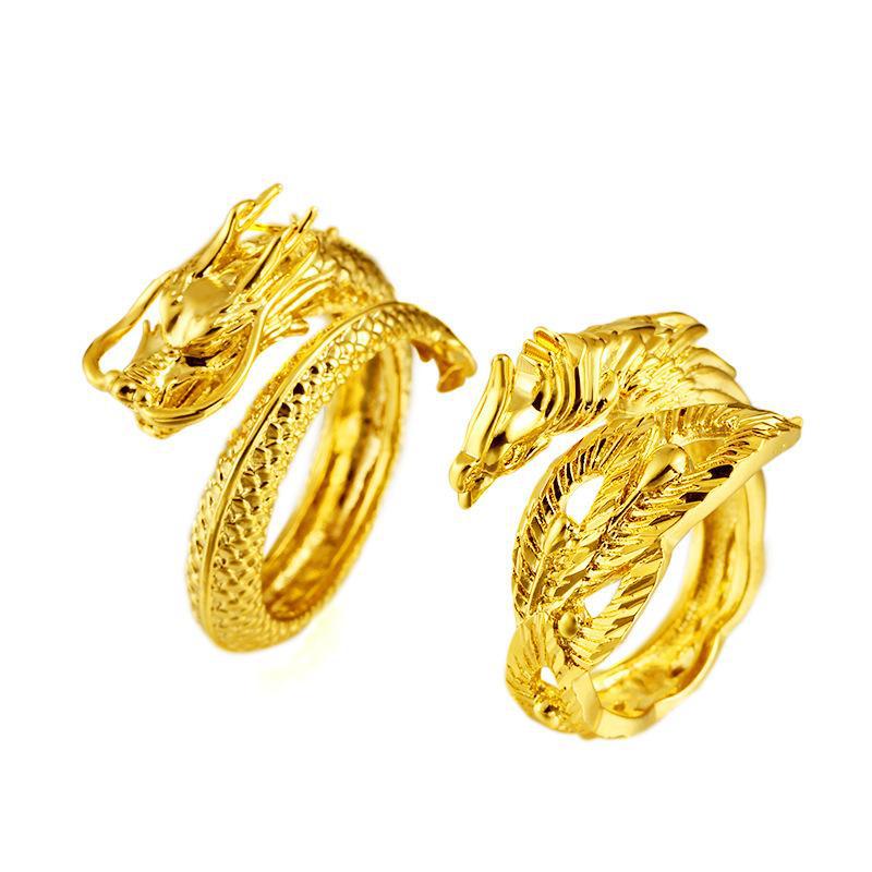 Anillo de Pareja Dragón y Fénix de Oro Arena Vietnamita Anillo Abierto Ajustable Grifo Flotante Anillo Dominante Venta al por Mayor de Fábrica