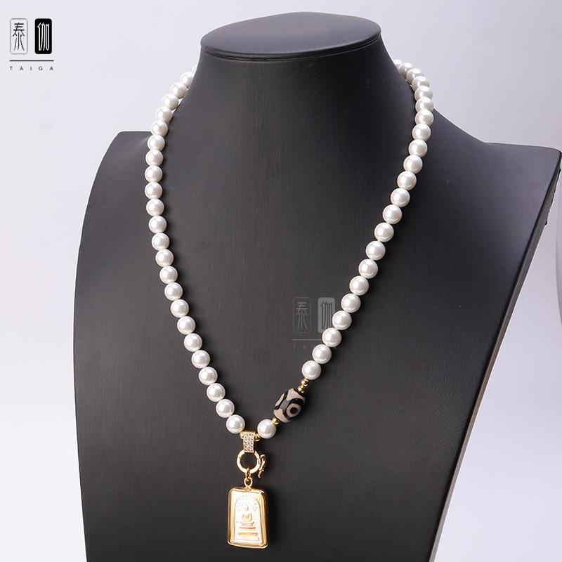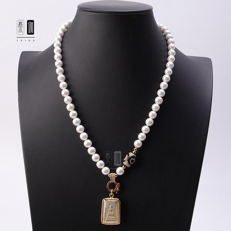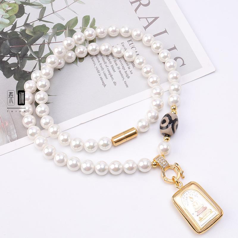 Cadena de la marca Thai Buddha, cordón Thangka con perlas y collar corto Tianzhu con microdiamantes y cierre de liberación rápida.
