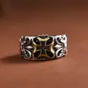 Anillo abierto con flor de cruz dorada vintage de plata S925 de Golden Deer King, venta al por mayor, anillo de dedo índice de plata tailandesa de moda para hombre