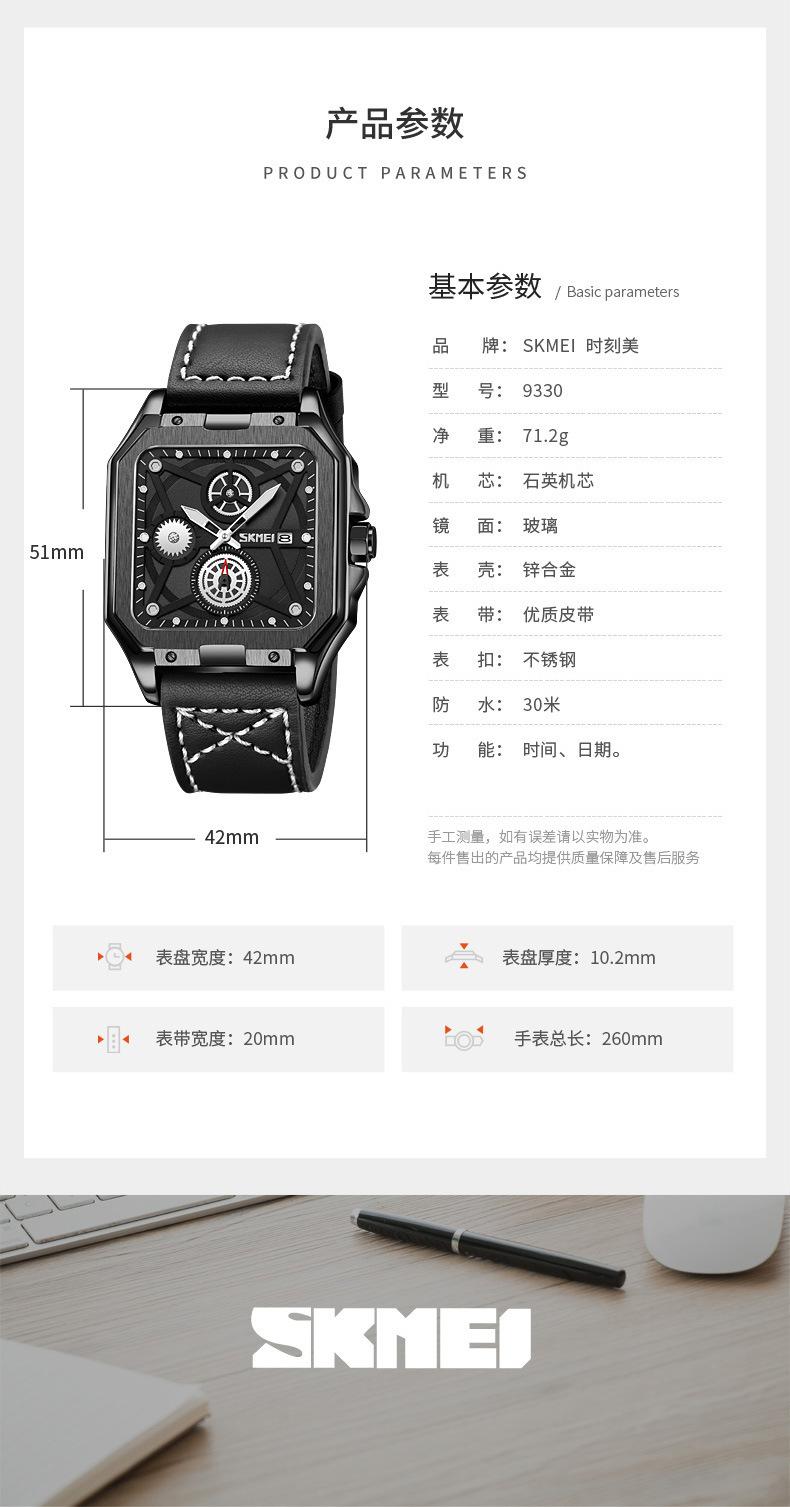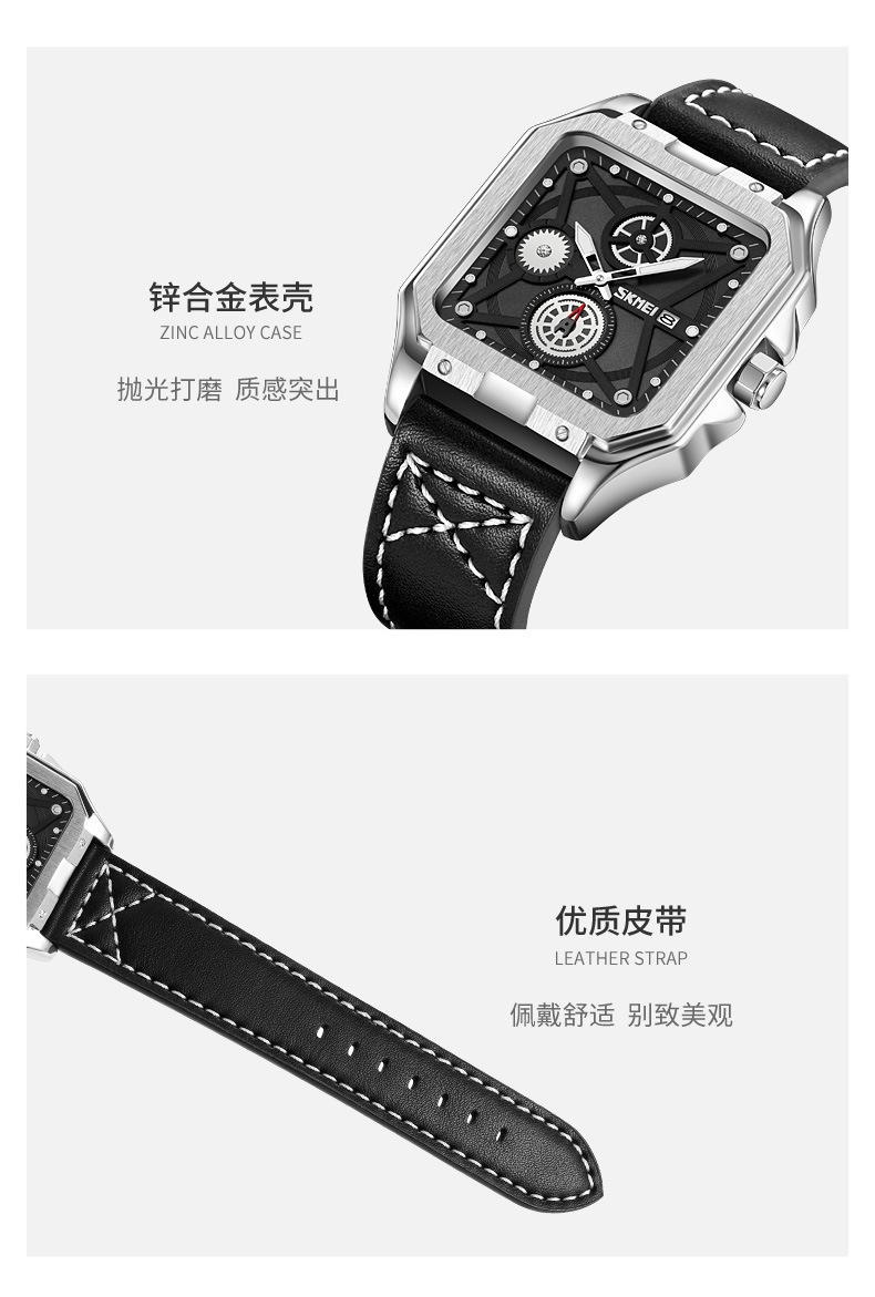 Reloj Skmei cuadrado para hombre, de cuarzo, de moda, luminoso, resistente al agua y con múltiples funciones.