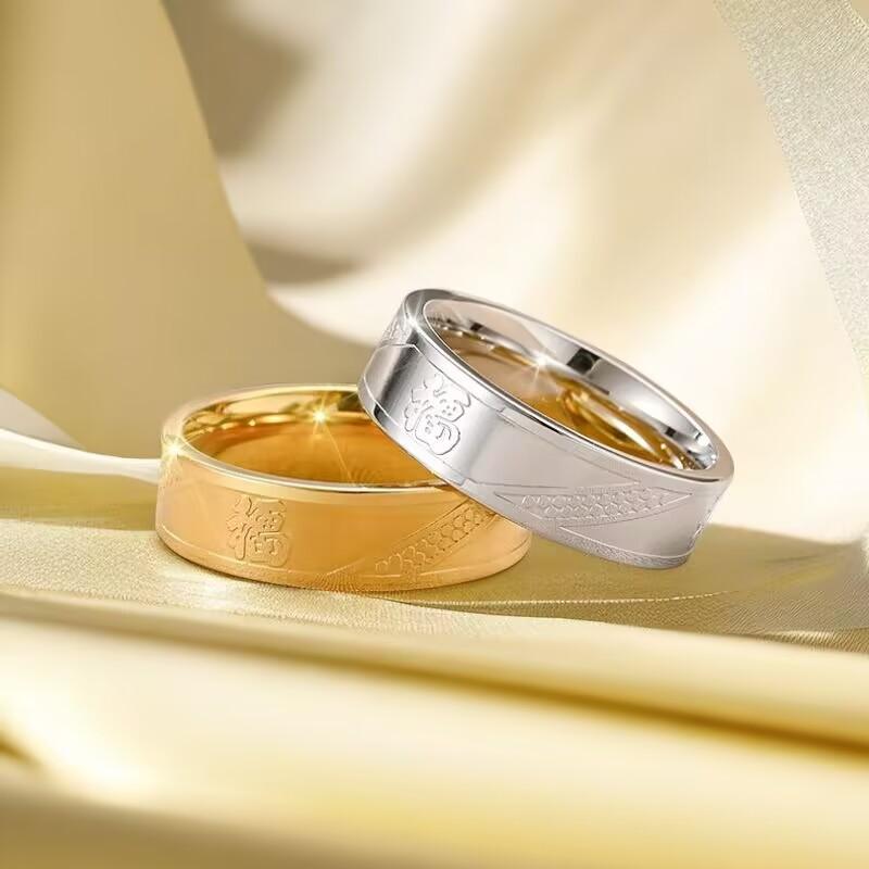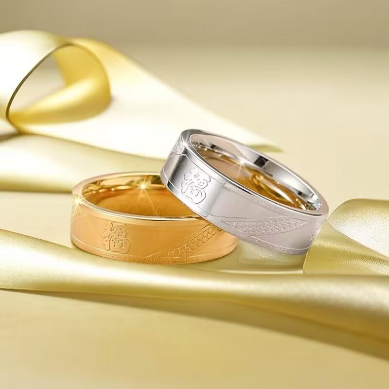 Tendencia Nacional Anillo de Pareja de Acero de Titanio de Alta Gama Estilo Popular de Celebridad de Internet No se Desvanece Moderno Anillo de Bendición Joyería de Mano Venta al por Mayor