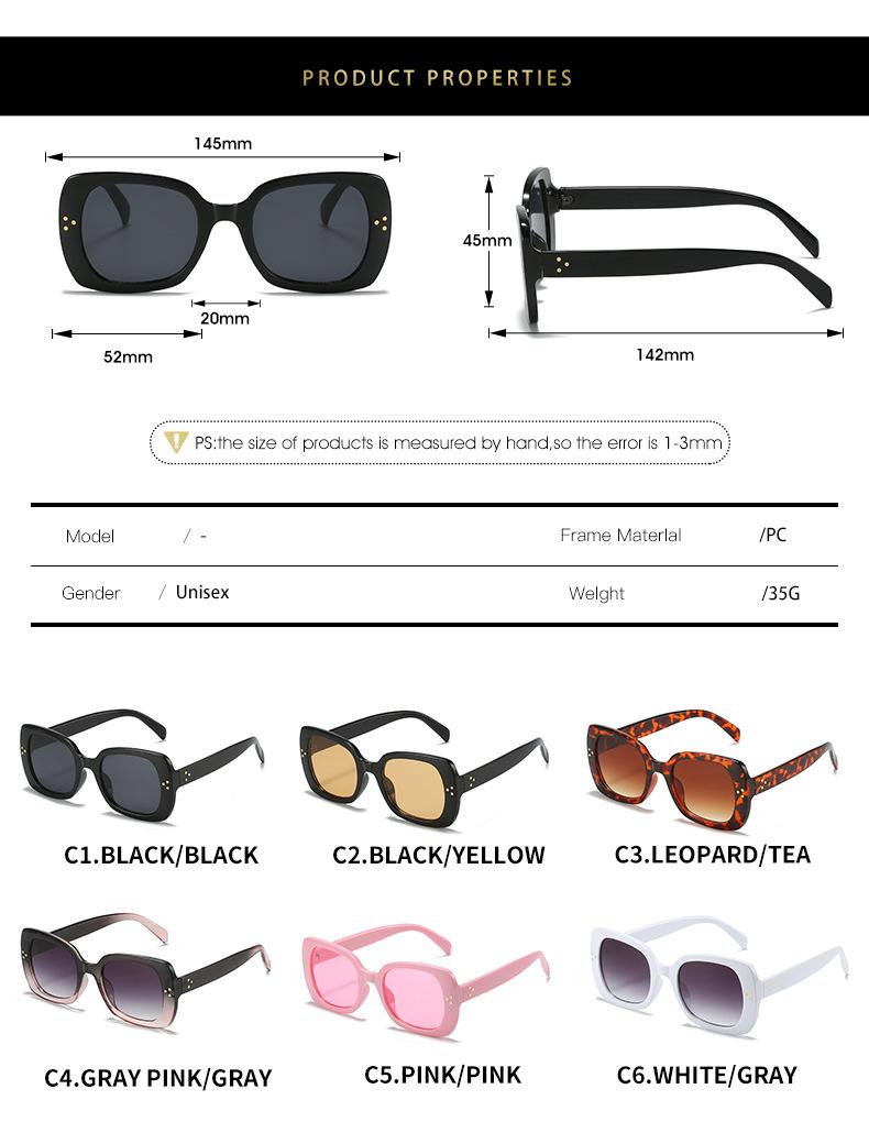 Nuevas Gafas de Sol de Montura Cuadrada, Marca de Moda Europea y Americana Estilo Similar Gafas con Tachuelas, Gafas de Sol Populares Transfronterizas para Mujer