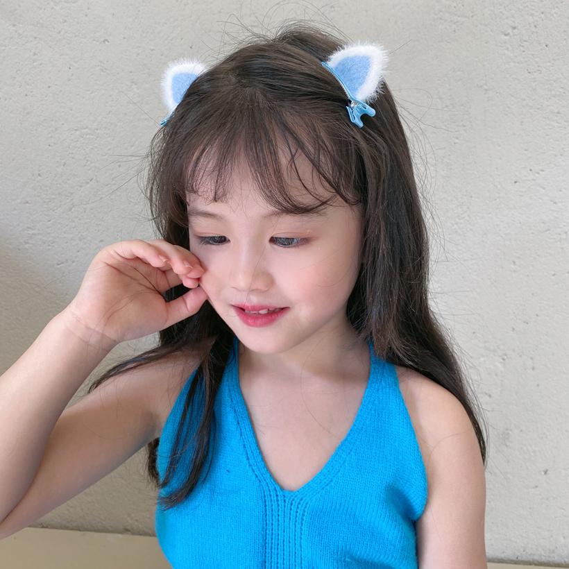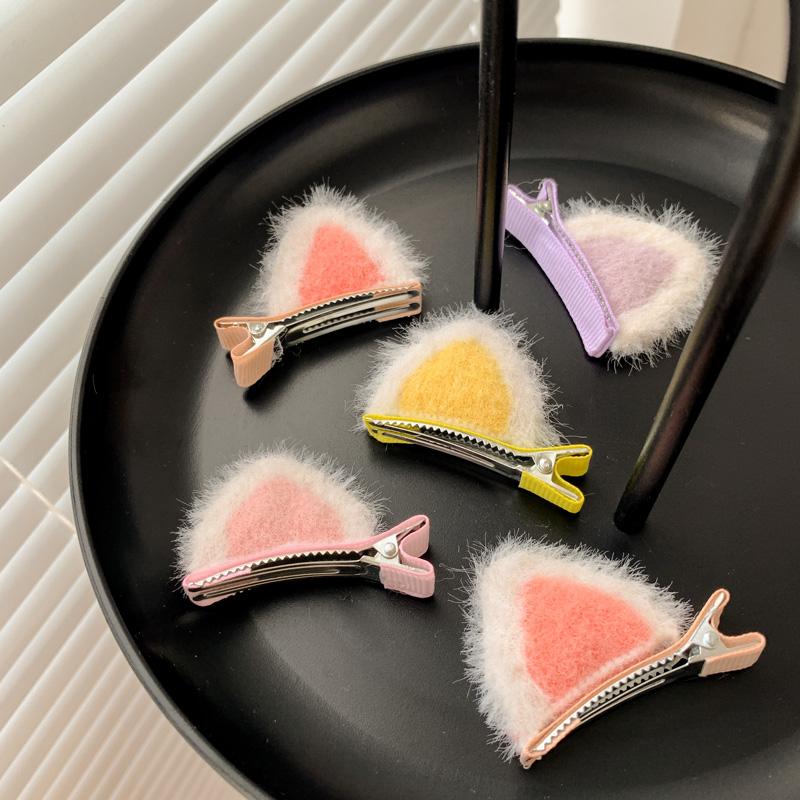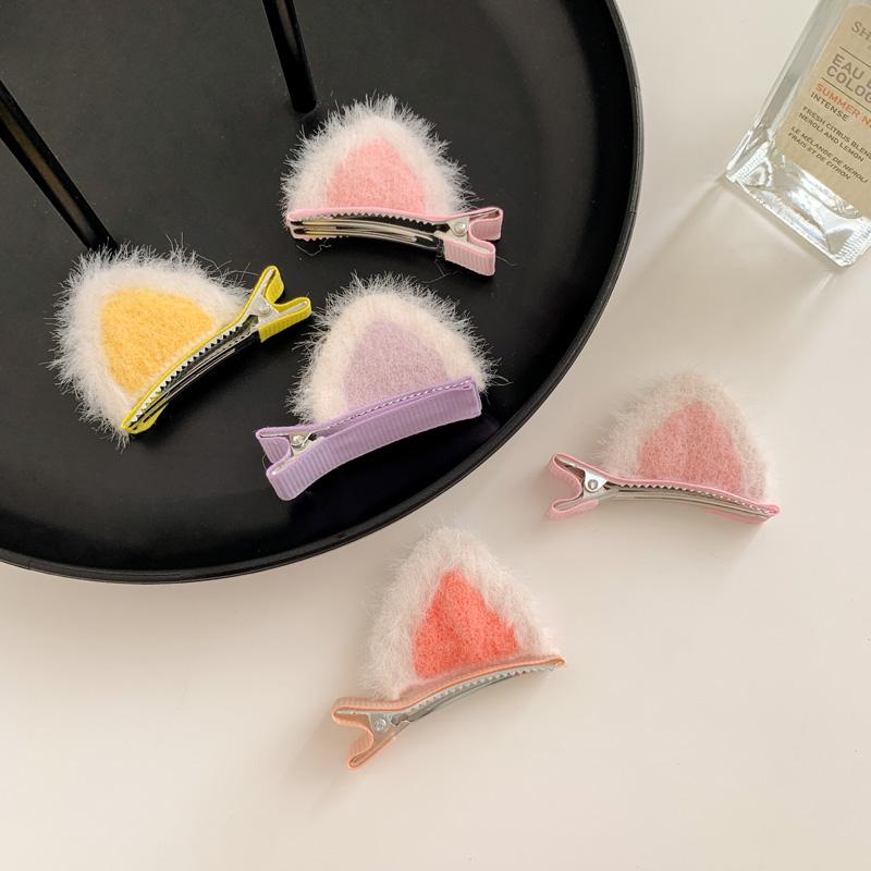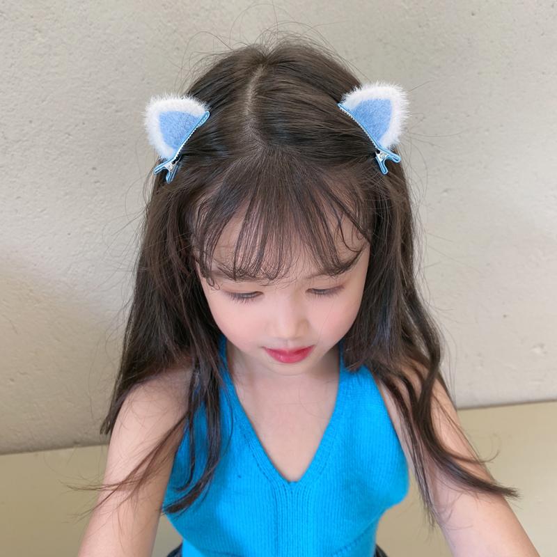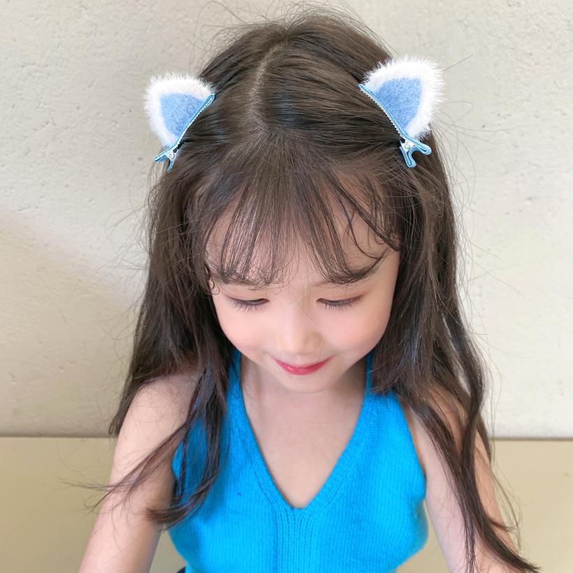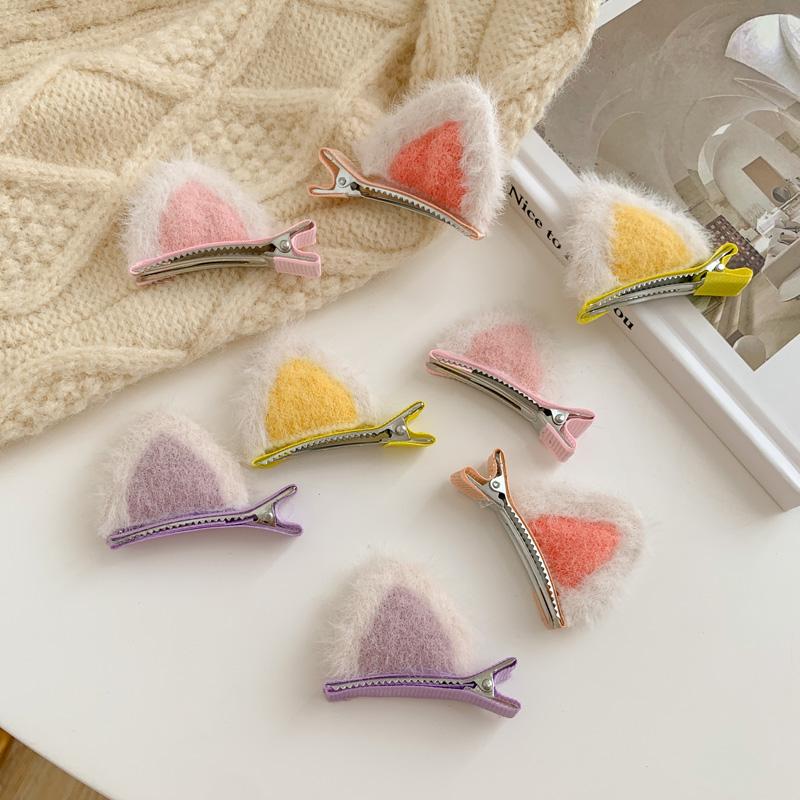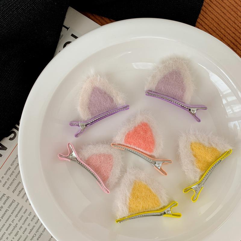 Otoño e Invierno Horquilla Coreana Infantil de Dibujos Animados Felpa Orejas de Gato Ciber Celebridad Niñas Linda Princesa Horquilla Adorno para el Cabello Niñas Mujeres
