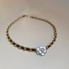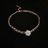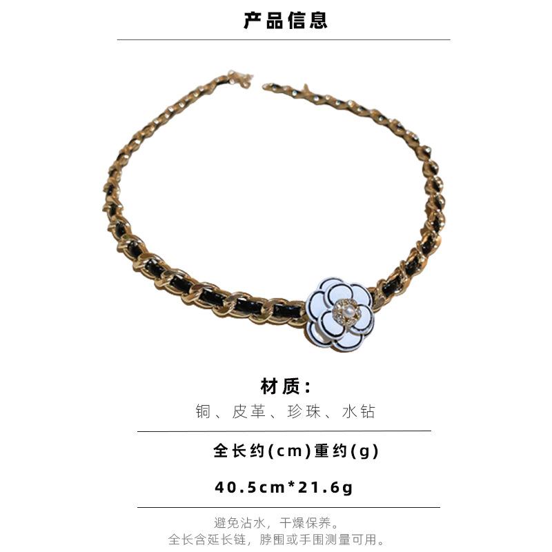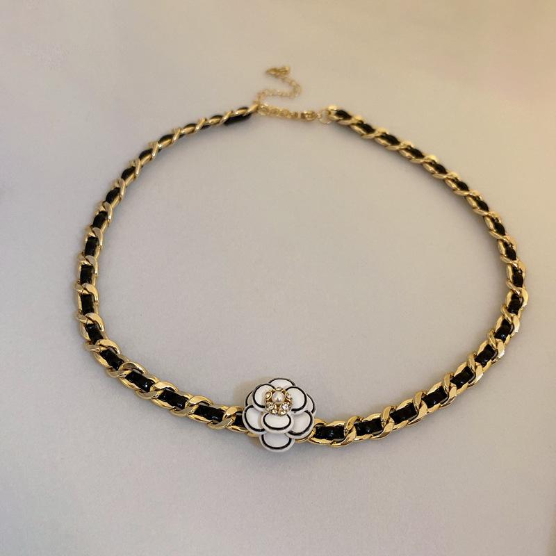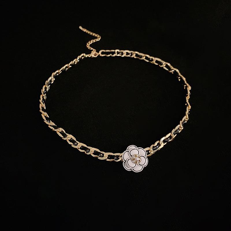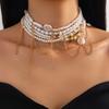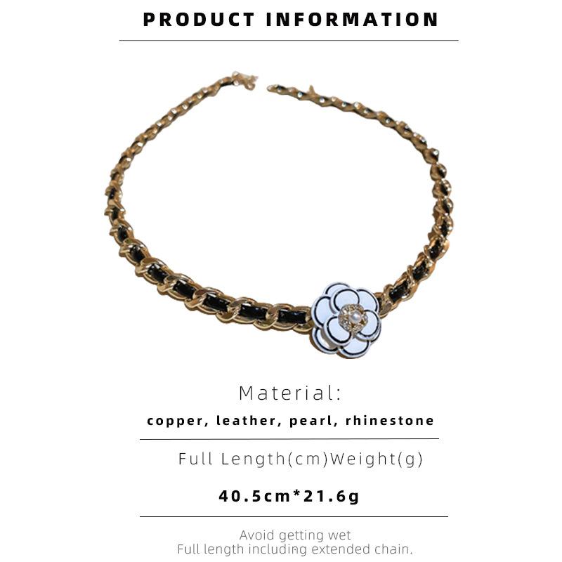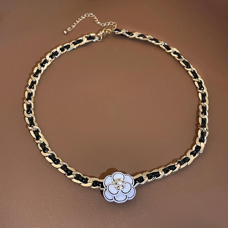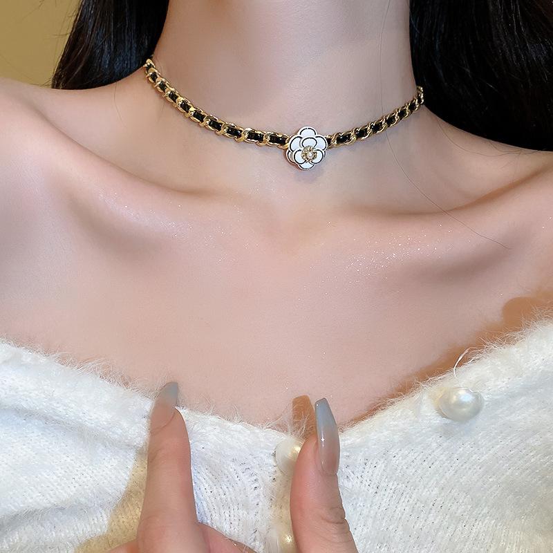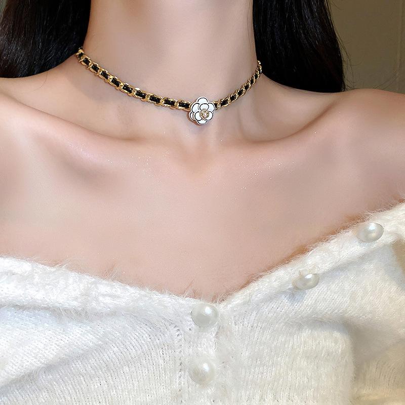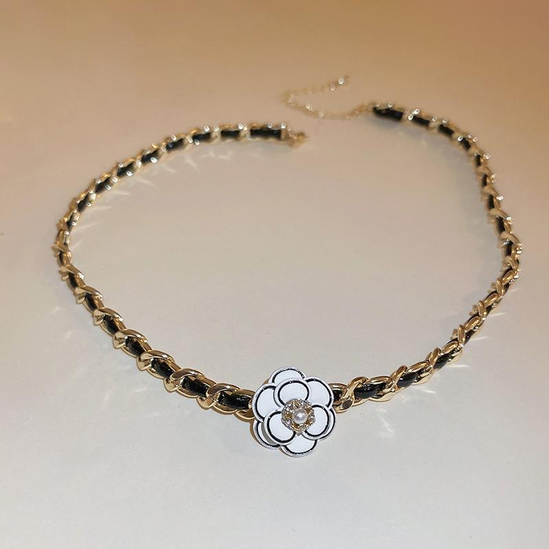 Collar de cuero con diseño distintivo de estilo oscuro y flor de perla de imitación, elegante gargantilla de moda europea y americana para mujer.
