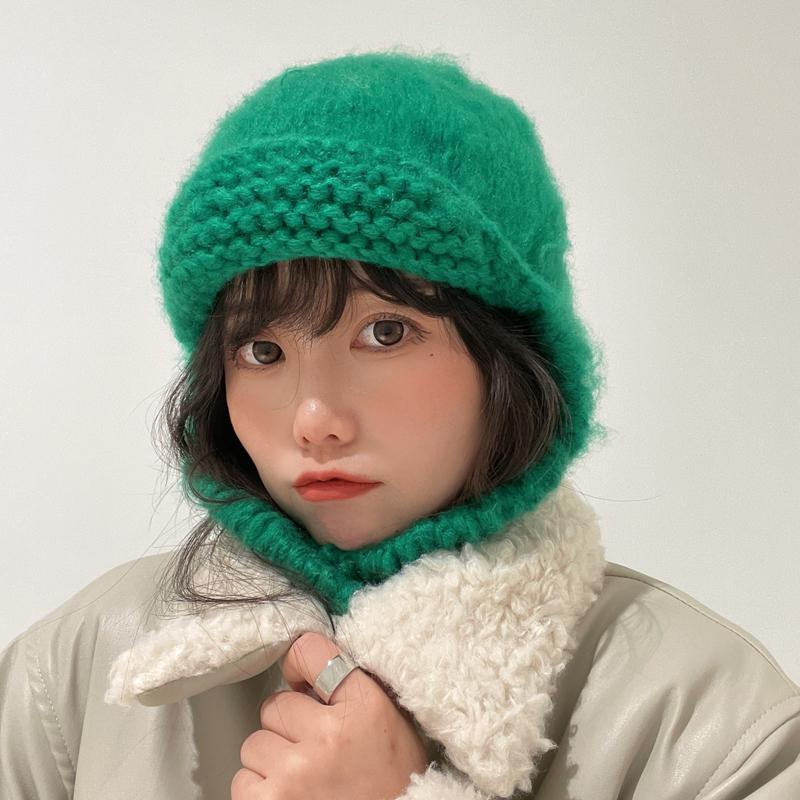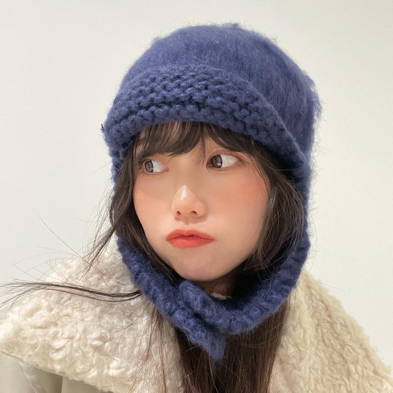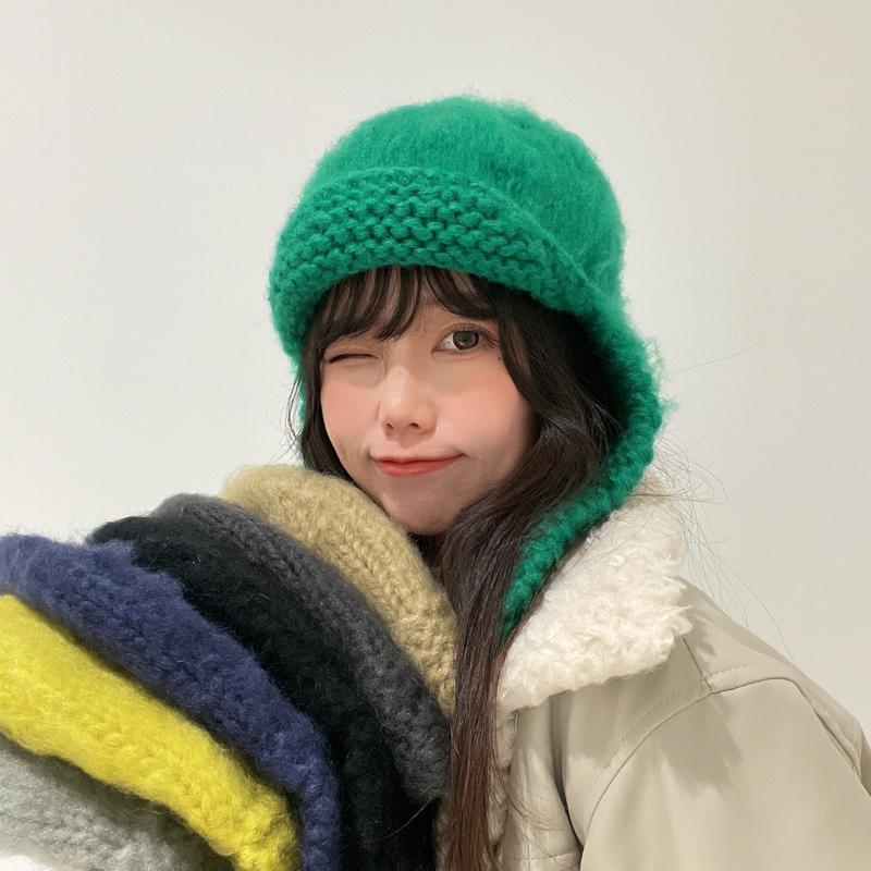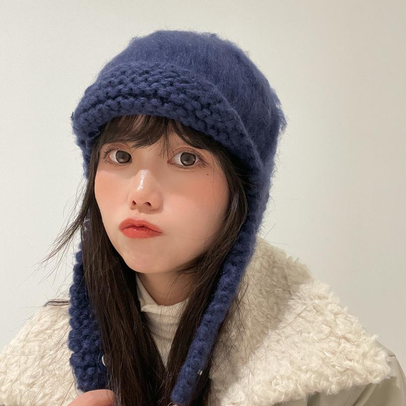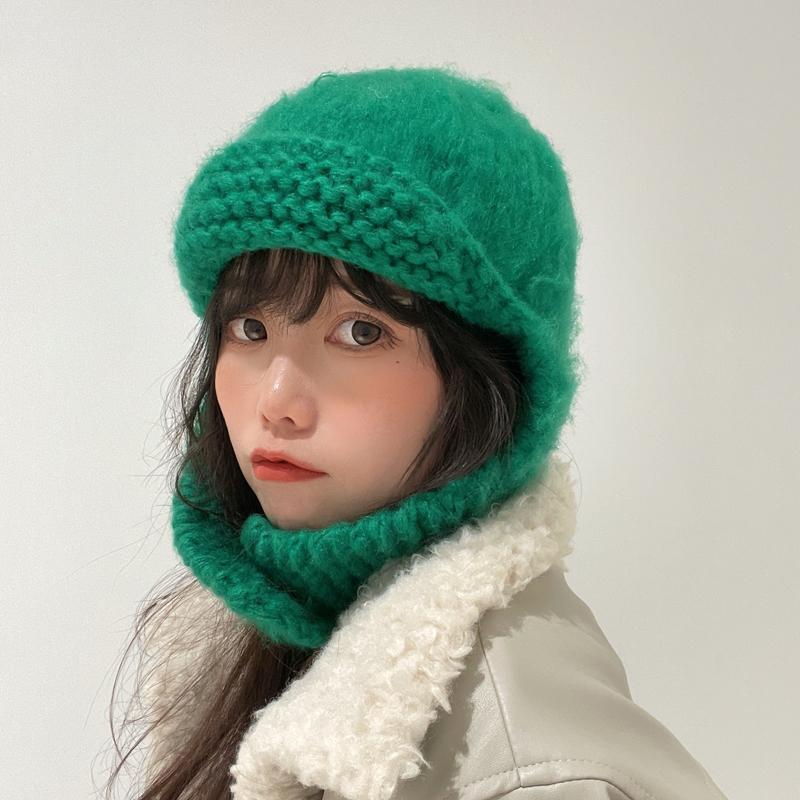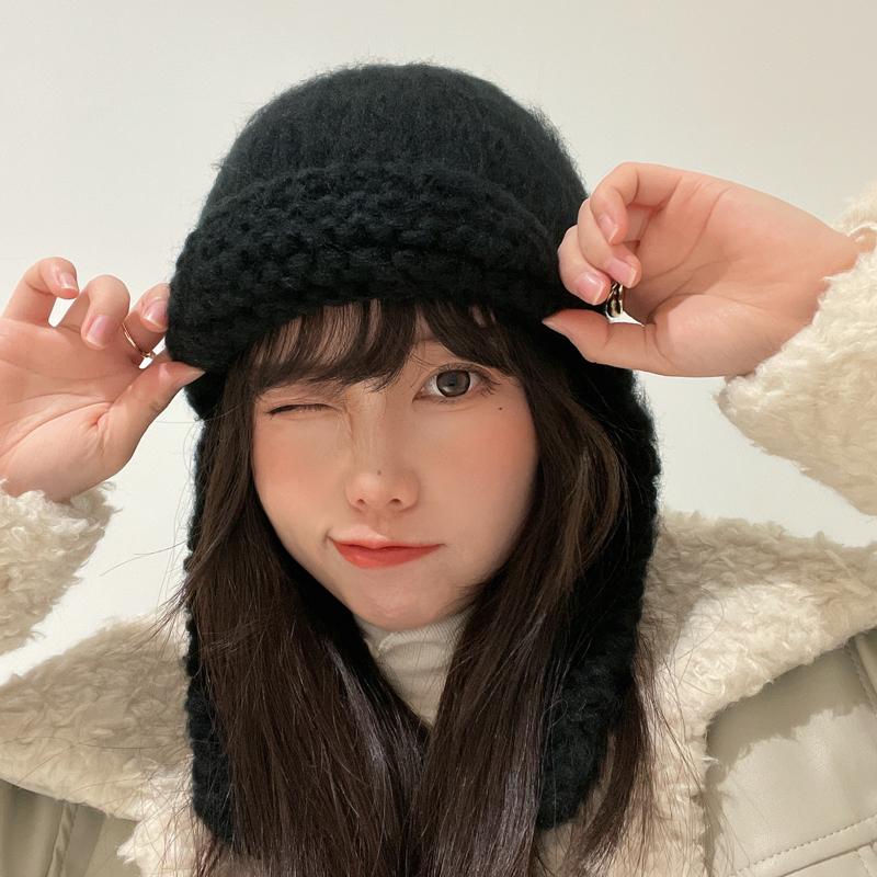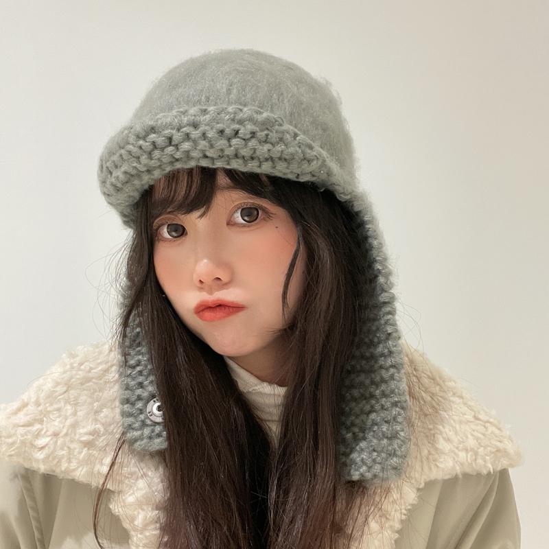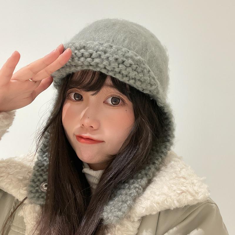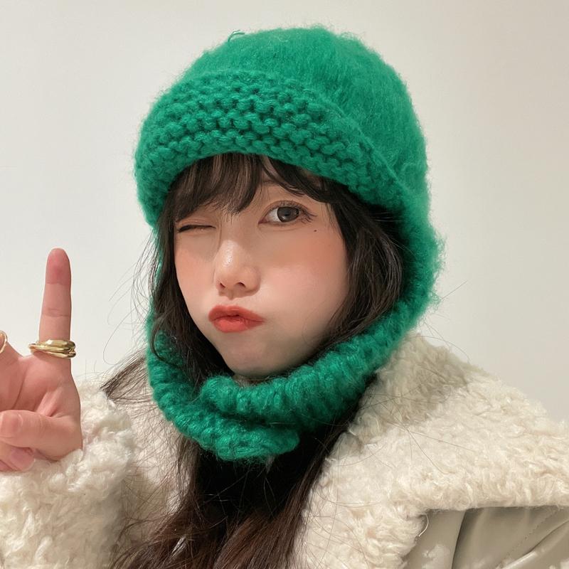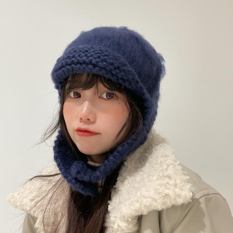 Gorro de Lana Crochet Hecho a Mano Coreano para Mujer con Bufanda Protectora para las Orejas de Una Pieza Retro Tejido Gorro de Punta Invierno Cálido Sombrero Volador