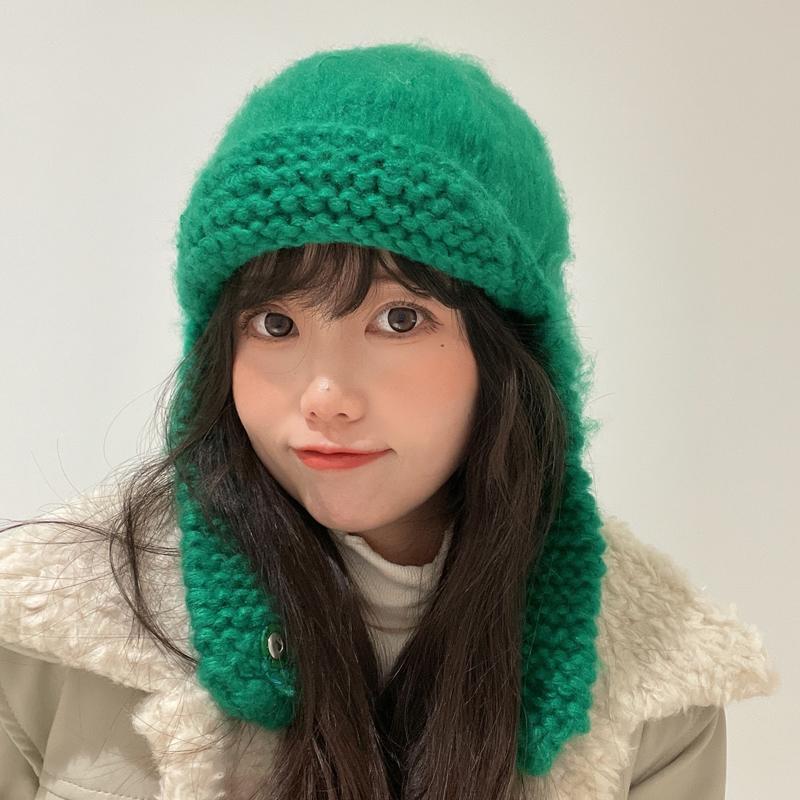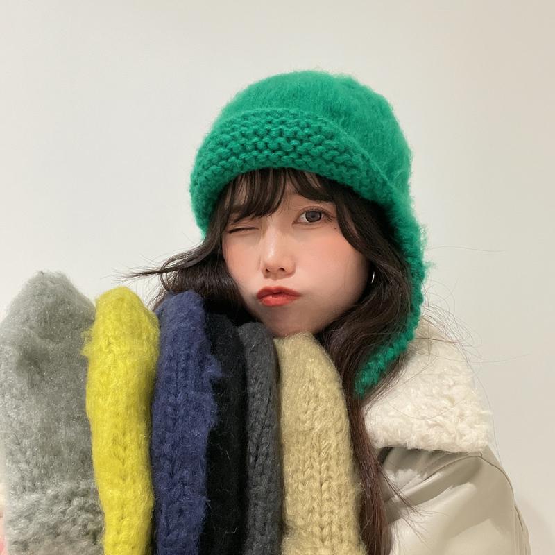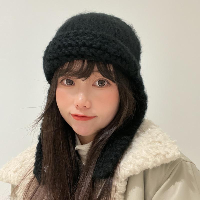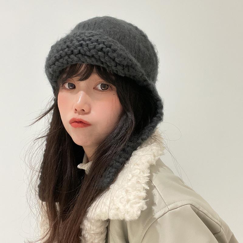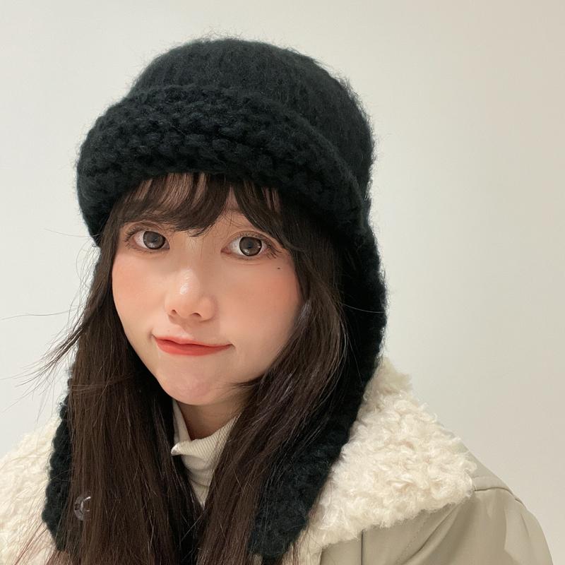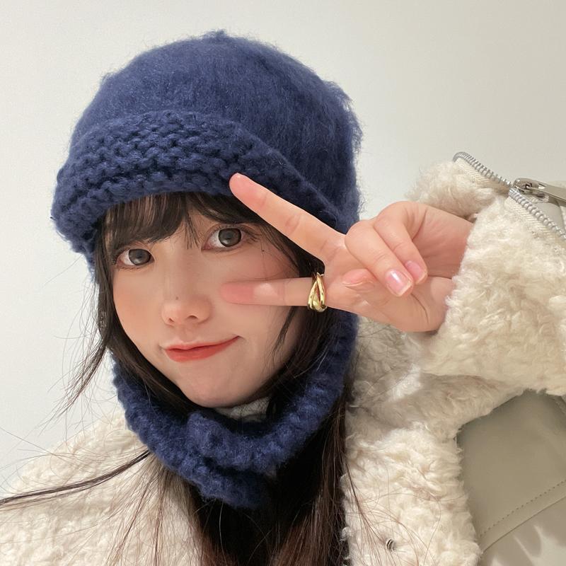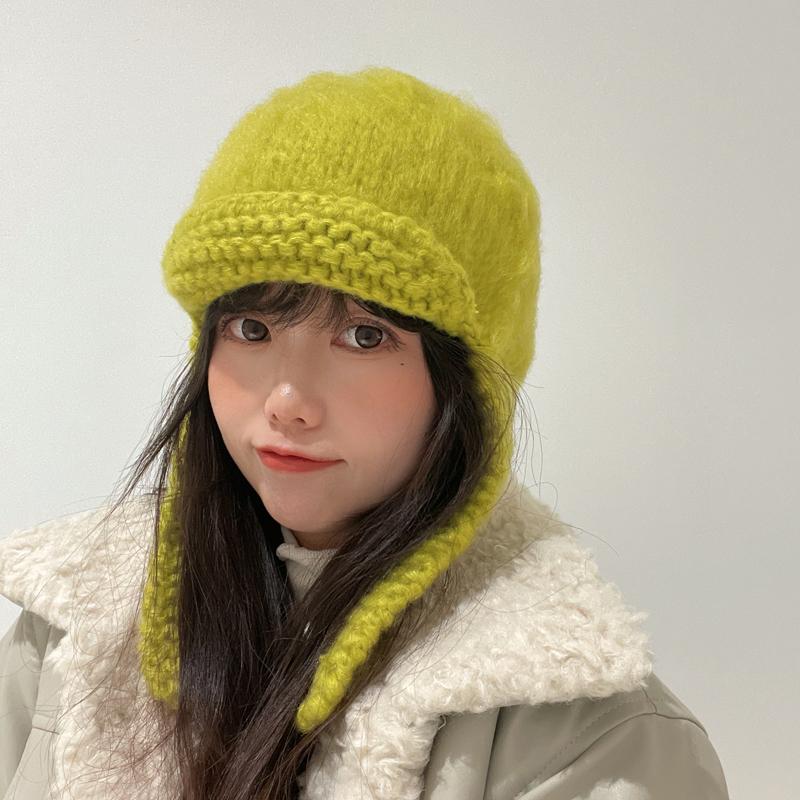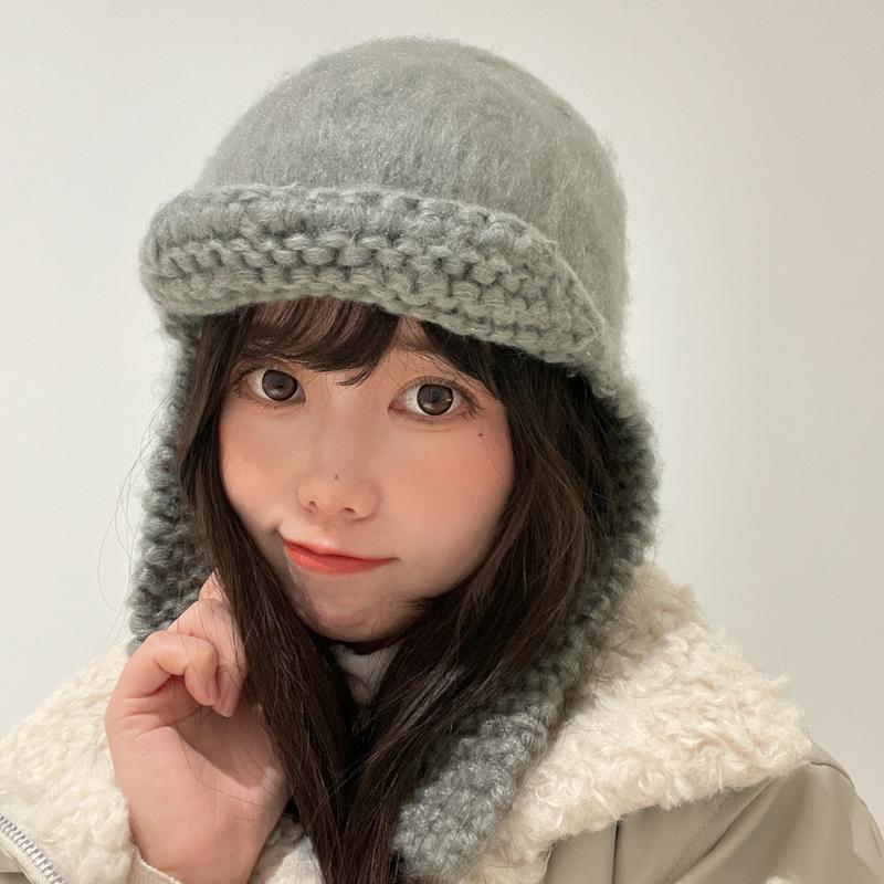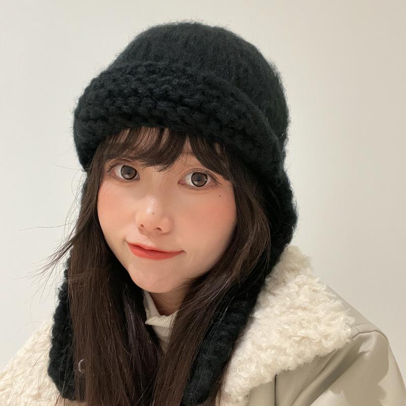 Gorro de Lana Crochet Hecho a Mano Coreano para Mujer con Bufanda Protectora para las Orejas de Una Pieza Retro Tejido Gorro de Punta Invierno Cálido Sombrero Volador