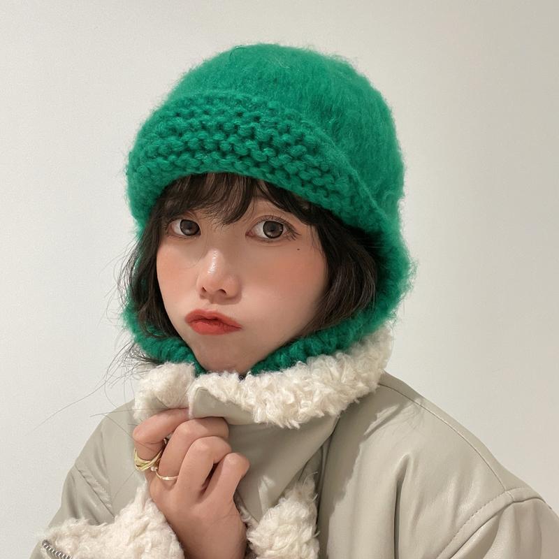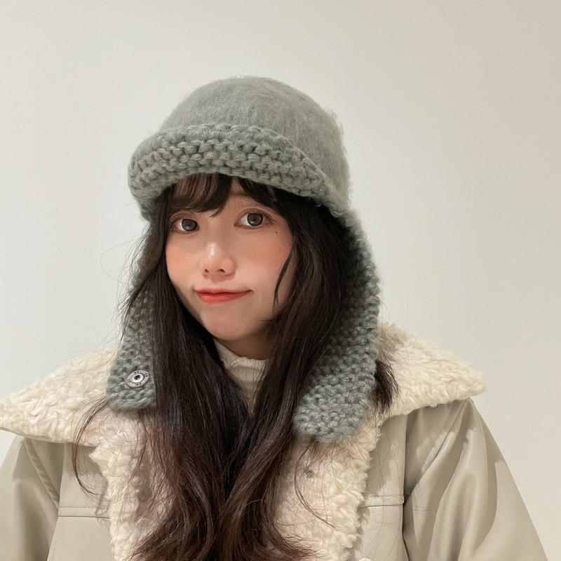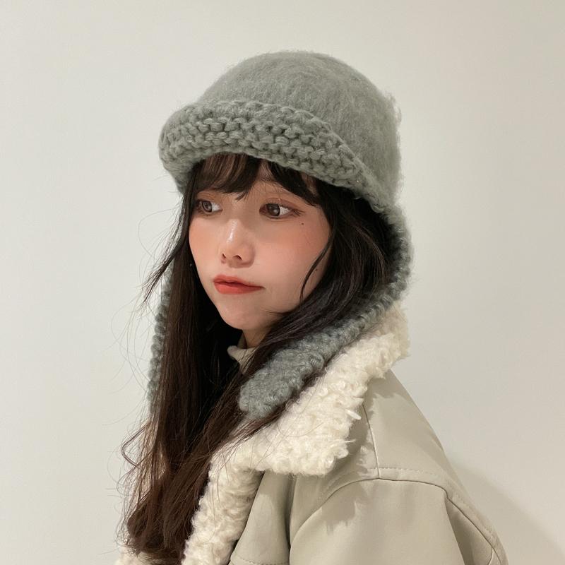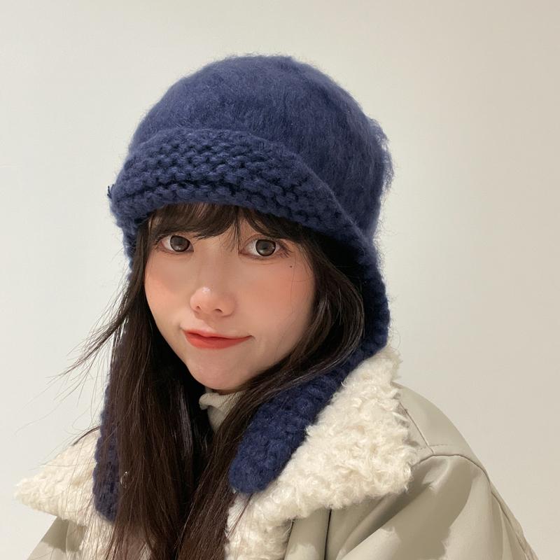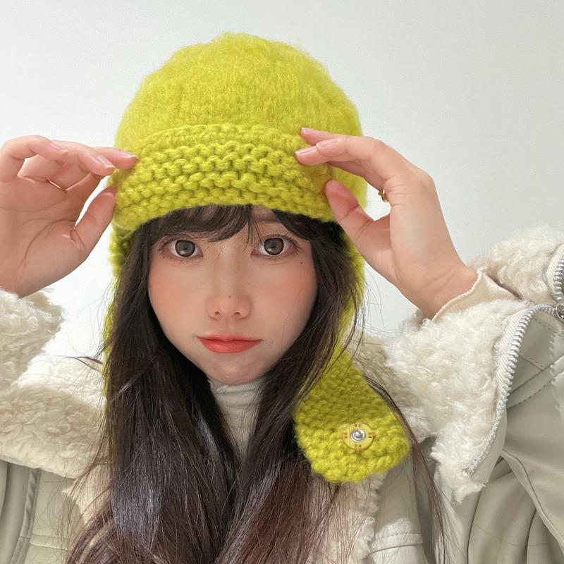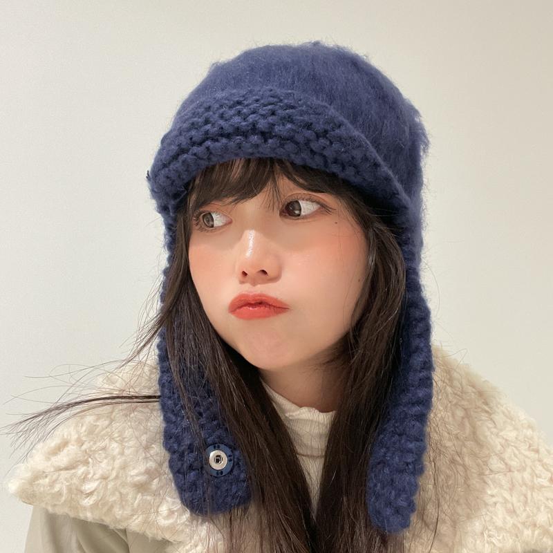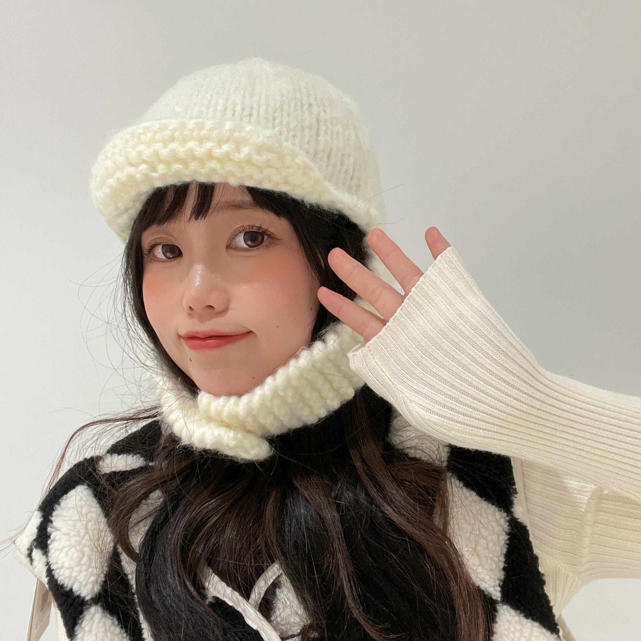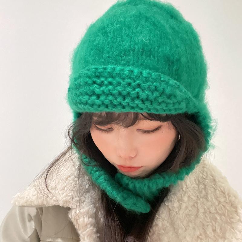 Gorro de Lana Crochet Hecho a Mano Coreano para Mujer con Bufanda Protectora para las Orejas de Una Pieza Retro Tejido Gorro de Punta Invierno Cálido Sombrero Volador