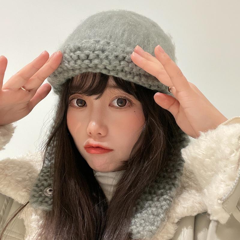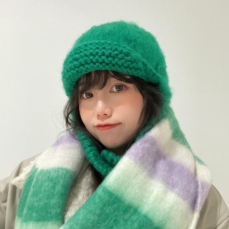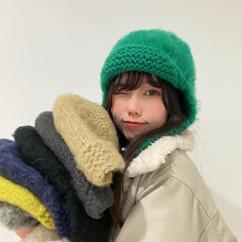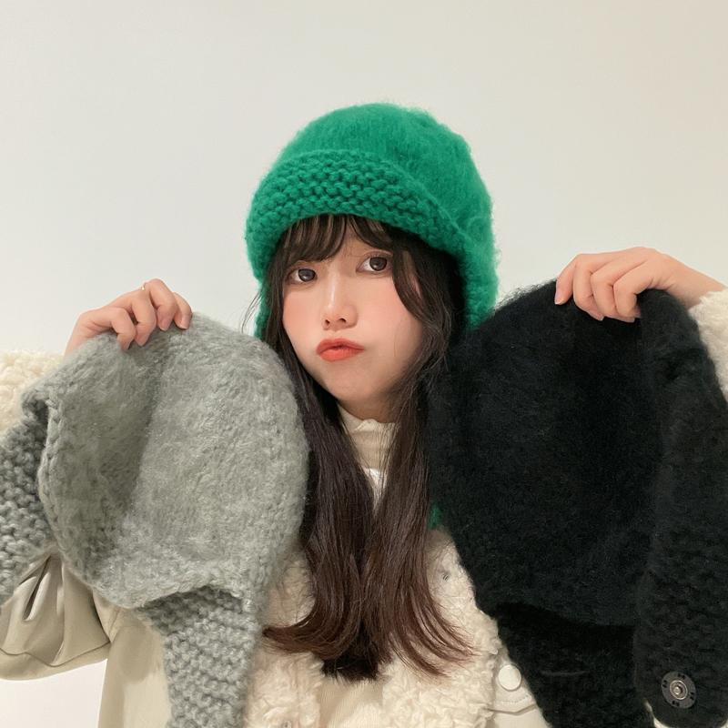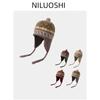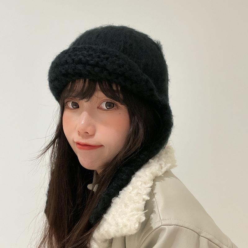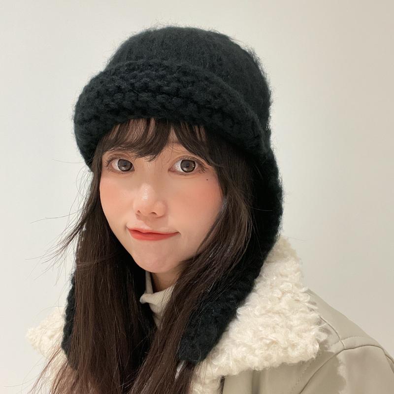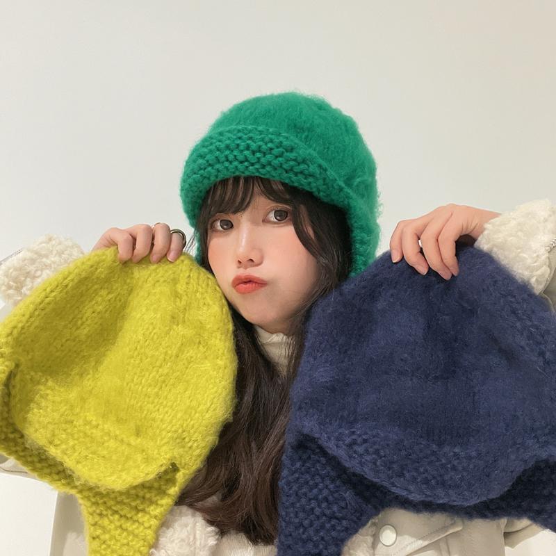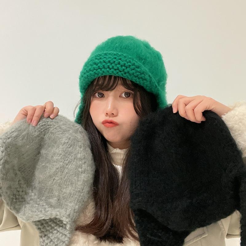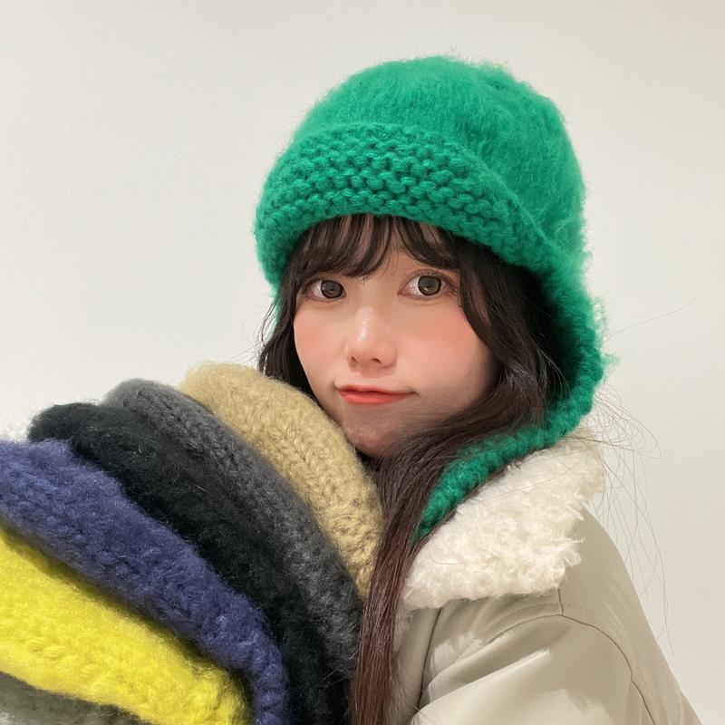 Gorro de Lana Crochet Hecho a Mano Coreano para Mujer con Bufanda Protectora para las Orejas de Una Pieza Retro Tejido Gorro de Punta Invierno Cálido Sombrero Volador