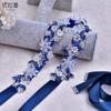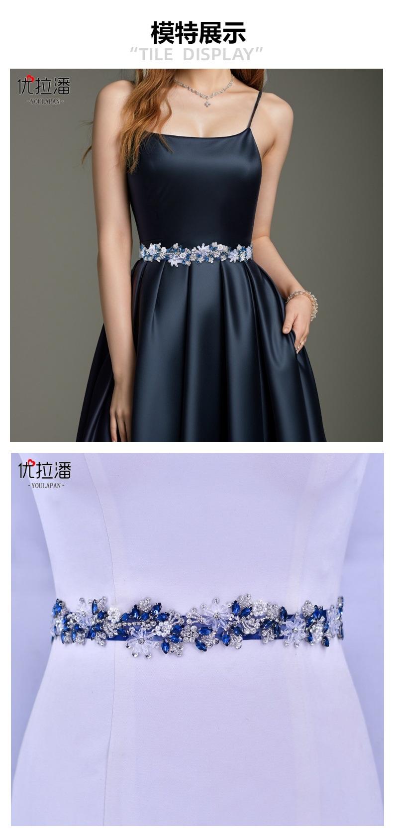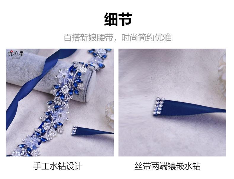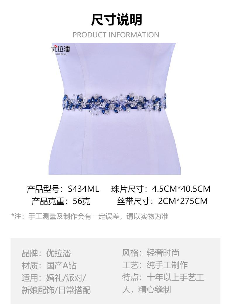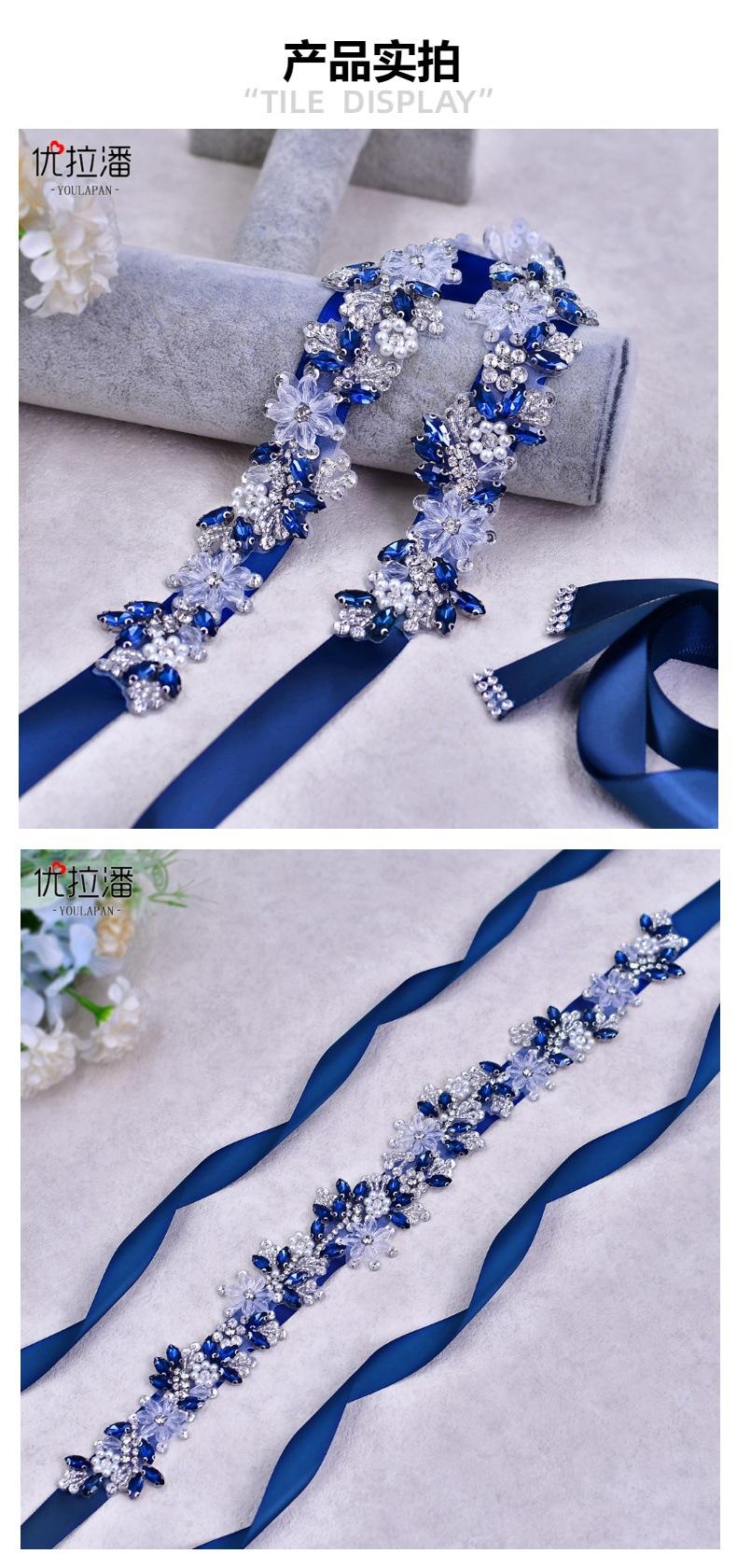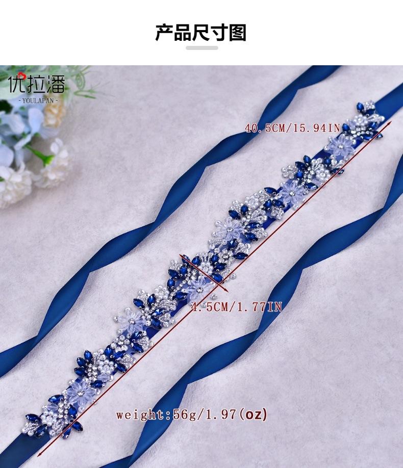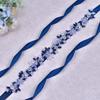 Ulapan S434 Azul Tinta Cinturón Nupcial Nepalí Hecho a Mano Pedrería Brillante Perla Calcomanía Diamante de Fuego Accesorios