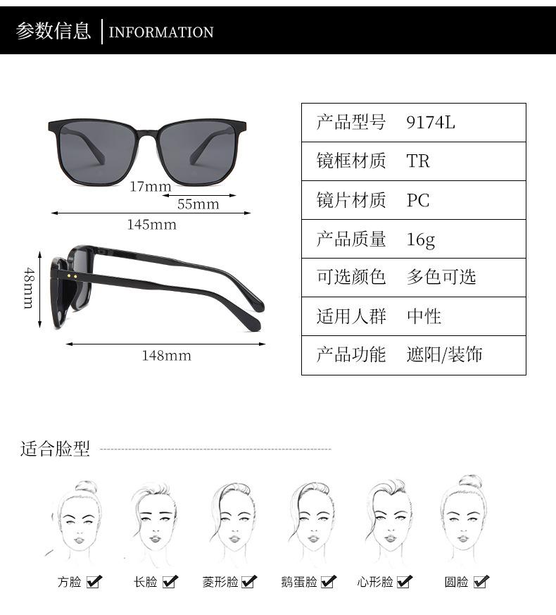 Gafas de sol vintage con montura cuadrada grande, personalizadas y de moda de comercio exterior, nuevas gafas de sol polarizadas TR negras