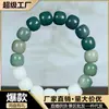 Pulsera ecológica original de raíz de Bodhi de jade blanco y verde degradado para hombres y mujeres con cuentas de Buda alrededor de los dedos y pulsera de un solo círculo con placa para mujer.