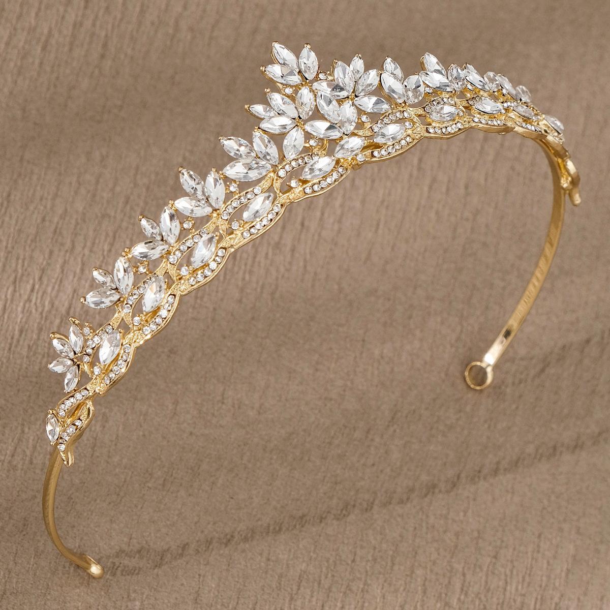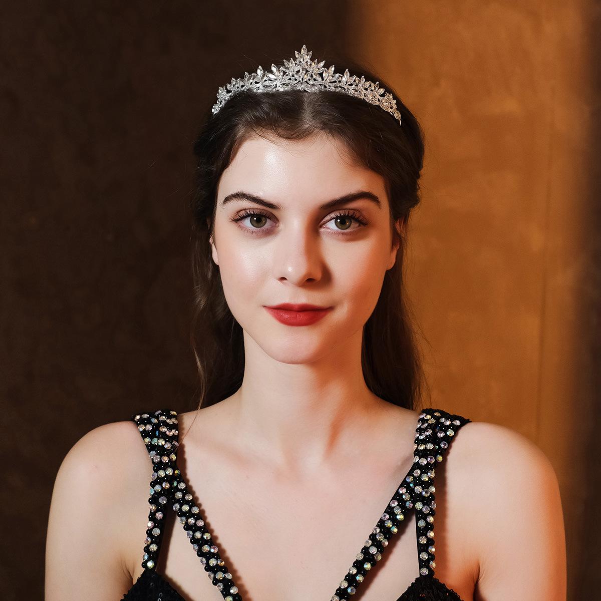 Corona de novia transfronteriza, accesorios para vestido de novia de temperamento simple, accesorios para el cabello de cumpleaños, corona de princesa de cristal de aleación.