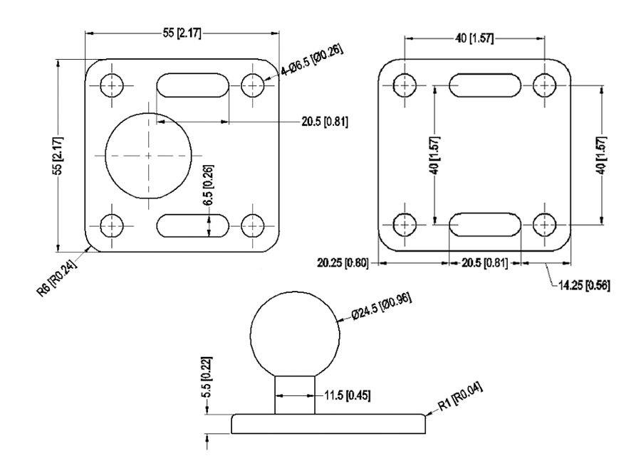 Base de rótula cuadrada de 1 pulgada, compatible con soporte RAM, accesorios de base, accesorios de rótula expansible, soporte fijo plano