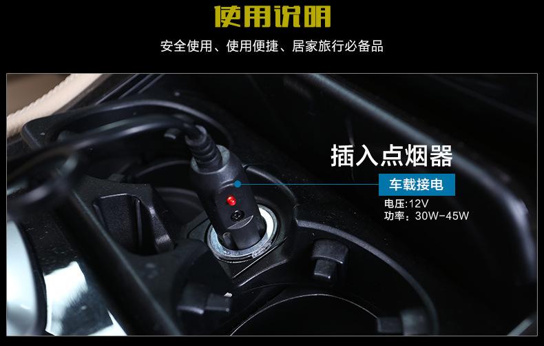 Función: Voltaje universal de 12 V (24 V personalizable), interruptor con marchas altas y bajas, enchufe para encendedor de cigarrillos. Ajustes de temperatura alta/baja, 45 W/35 W, control automático de temperatura de 30 °C a 65 °C. El producto cuenta con las certificaciones CE, ROHS y otras.