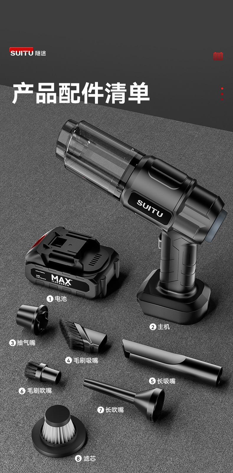 Black *10 batteries * blow-suction integrated vacuum cleaner + small floor brush