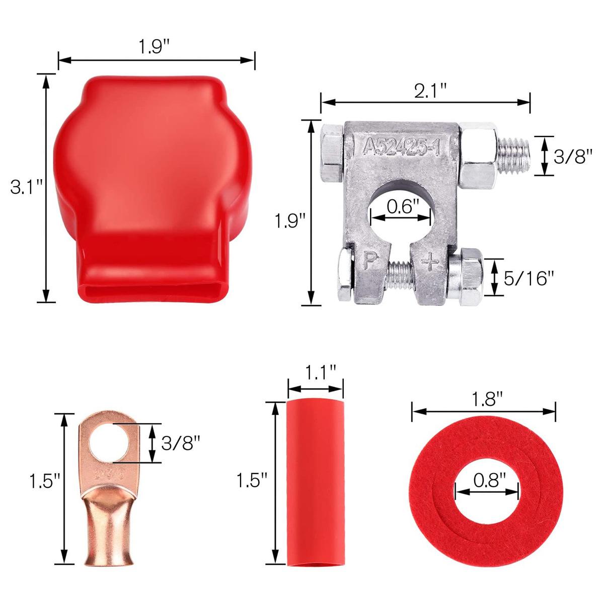 [El producto incluye]: pinzas de batería positiva y negativa, almohadillas protectoras rojas y verdes, fundas ignífugas * 2, tubos termorretráctiles * 4, terminales de cobre * 4