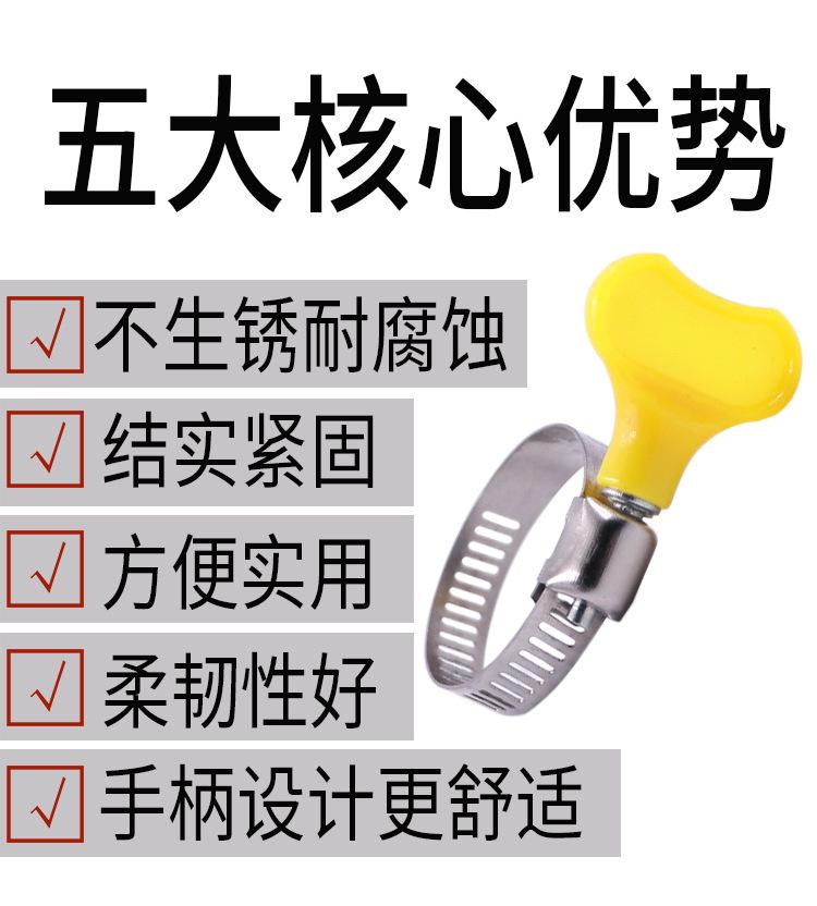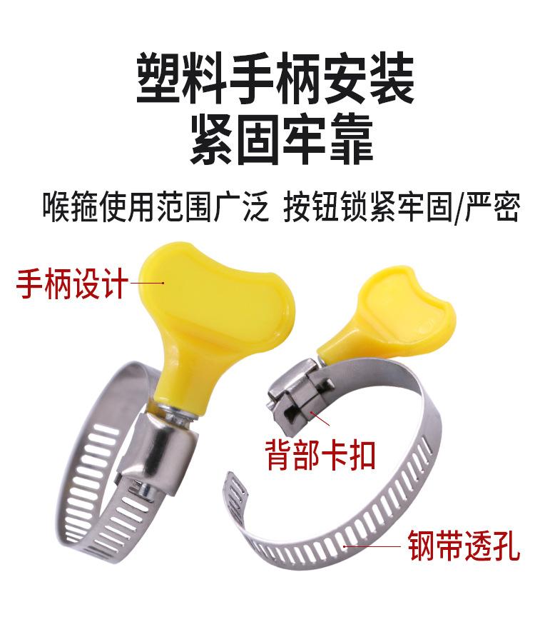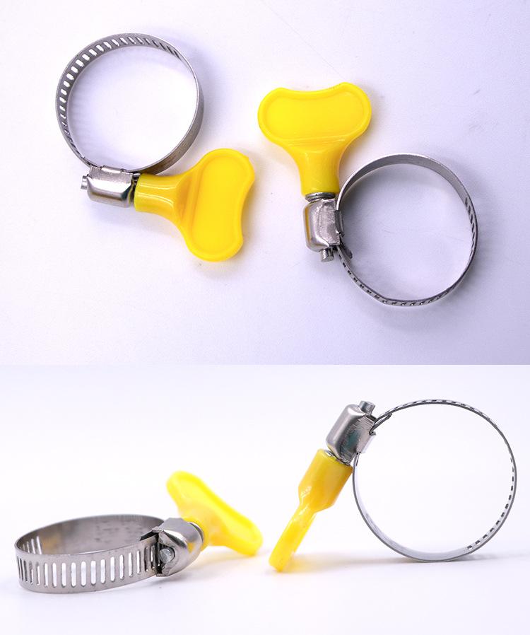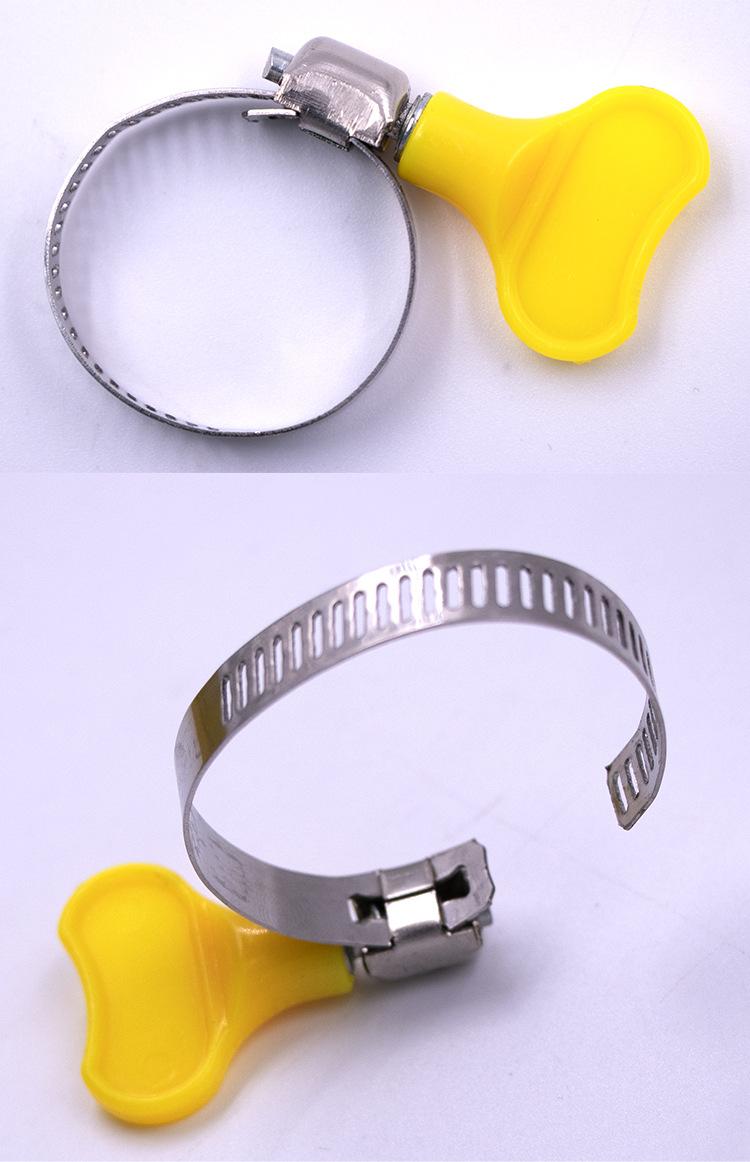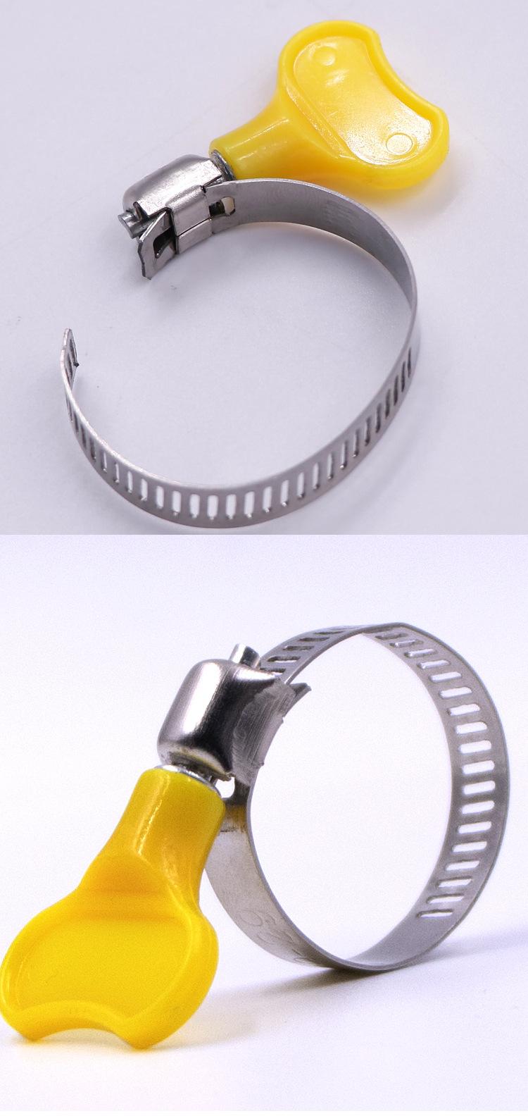 Abrazadera de garganta con mango de plástico, abrazadera de garganta de acero inoxidable, abrazadera para tubería de agua, abrazadera con hebilla para tubería de piel, abrazadera de garganta
