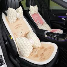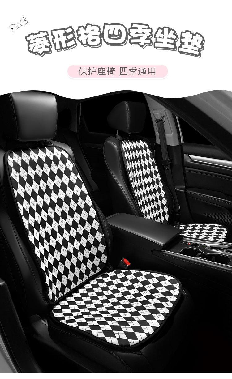 Nombre del producto: Cojín para asiento de coche universal para todas las estaciones de una sola pieza verano lino ins rojo neto patrón diamante cojín para asiento trasero de coche para mujeres