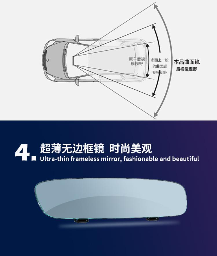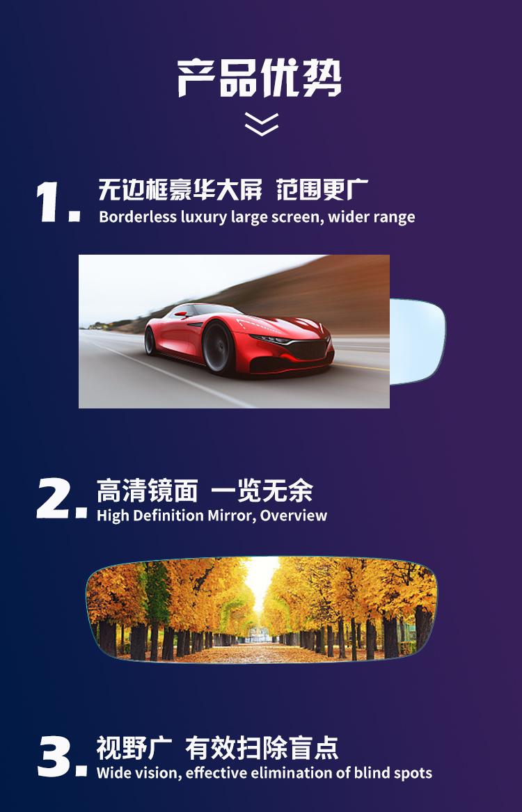 Recomendación de producto nuevo, con diseño de borde delgado de PC transparente, el efecto después de la instalación es muy de alta gama, igual que la visión sin marco. La superficie del espejo es de vidrio de alta definición, la vista y la imagen son muy fáciles de ver claramente. Fácil de instalar, solo átelo al espejo retrovisor dentro del coche.