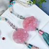 Venta al por mayor de fábrica cristal rosa natural tallado a mano peonía flotante colgante para bolsa colgante para habitación joyería colgante cuentas redondas de cristal blanco