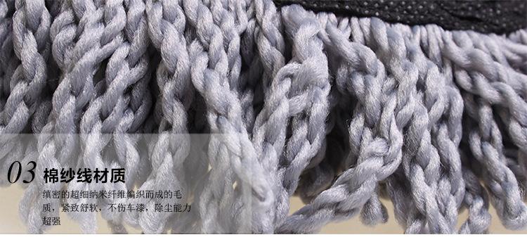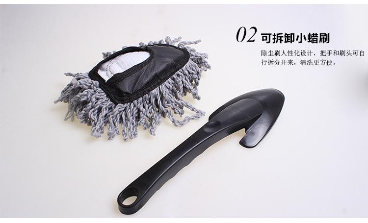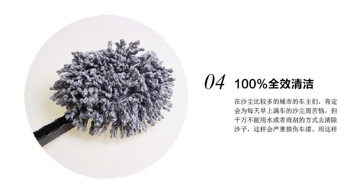 Este producto elimina el polvo fácilmente y es fácil de cuidar. Está hecho de hilo de algodón, muy suave y con un gran poder de limpieza. Al usarlo, no daña la pintura de la carrocería. Es grueso, duradero, hermoso y elegante. El cabezal del cepillo se puede quitar y limpiar.