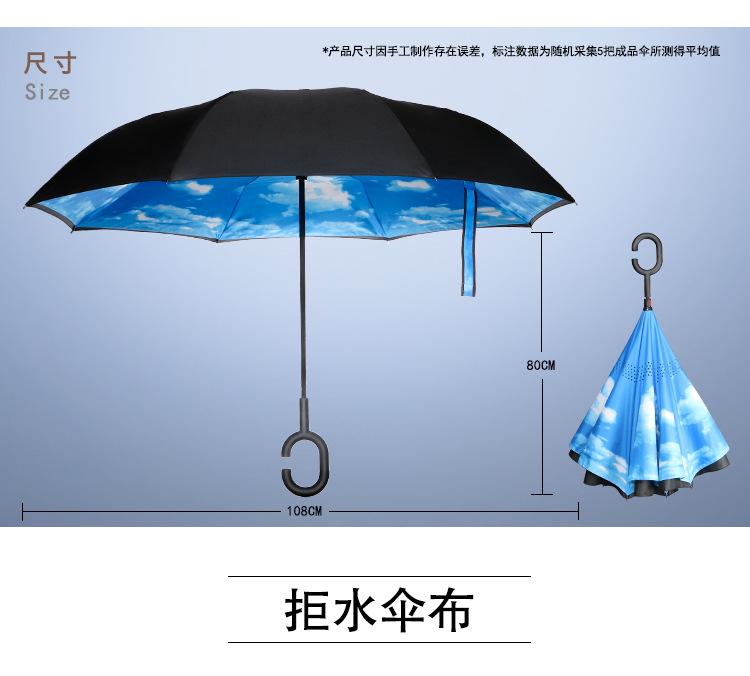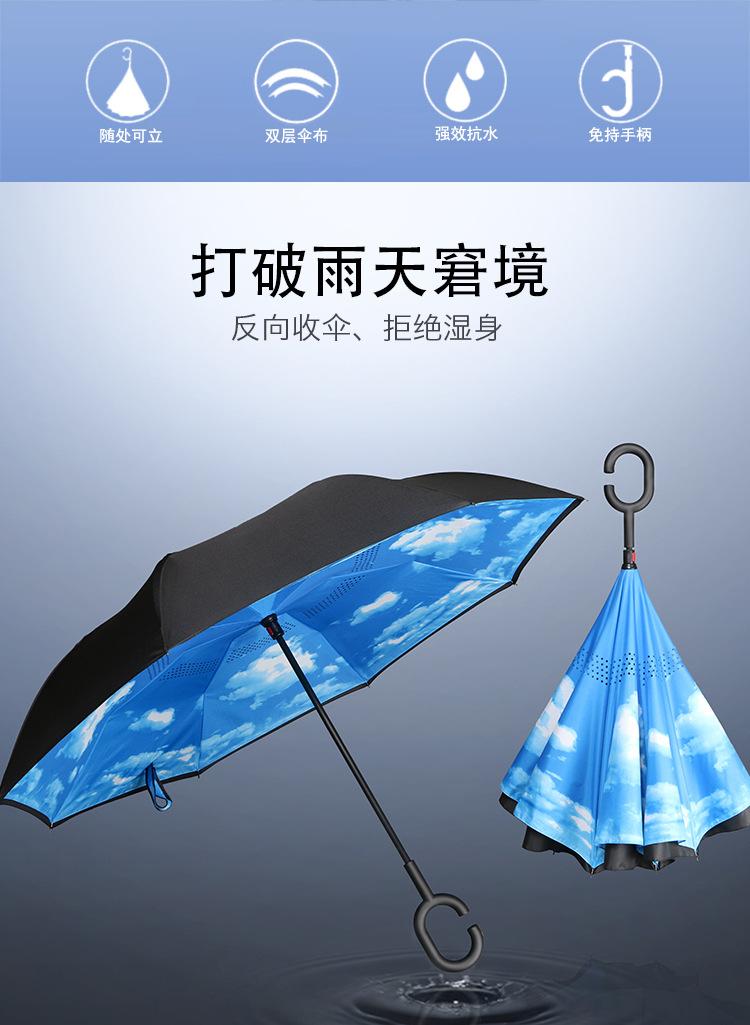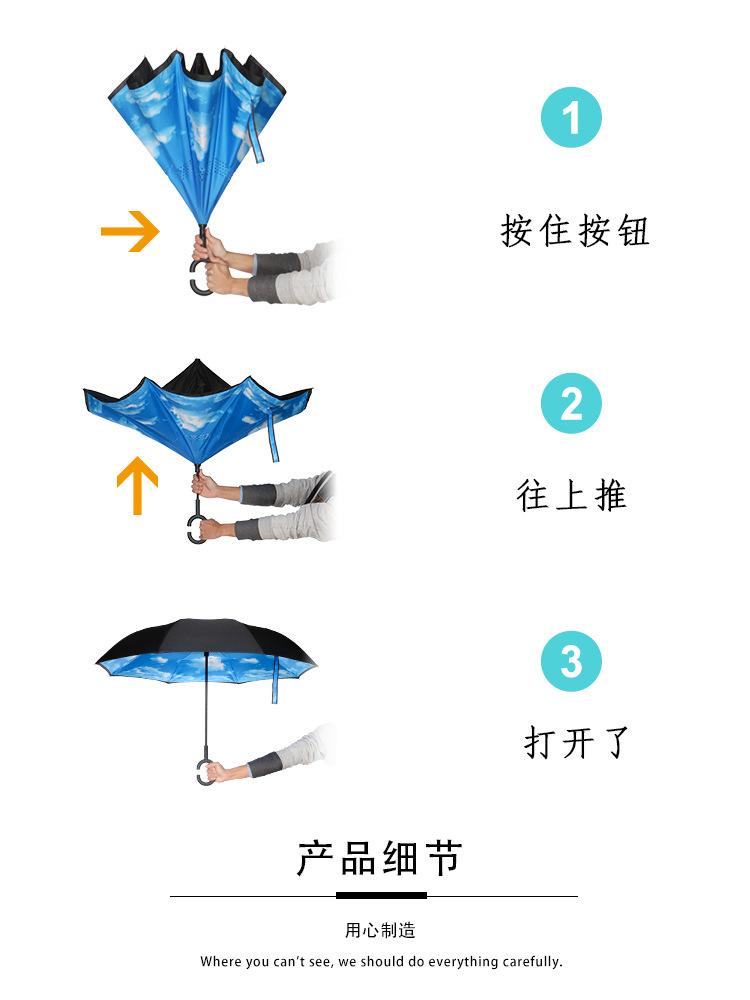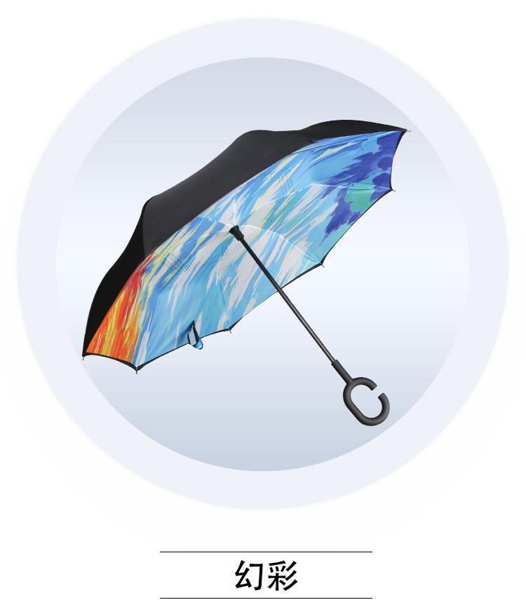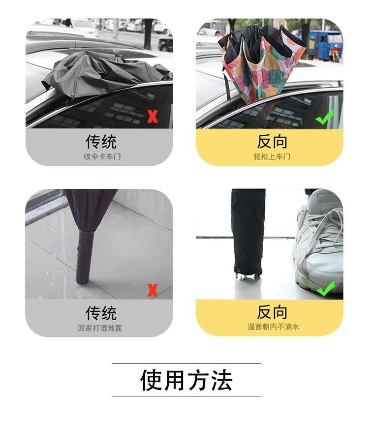 【Características del Producto】: 1. Dobla el paraguas al revés para evitar mojarte en los días lluviosos. Es conveniente doblar/abrir el paraguas al subir y bajar del coche