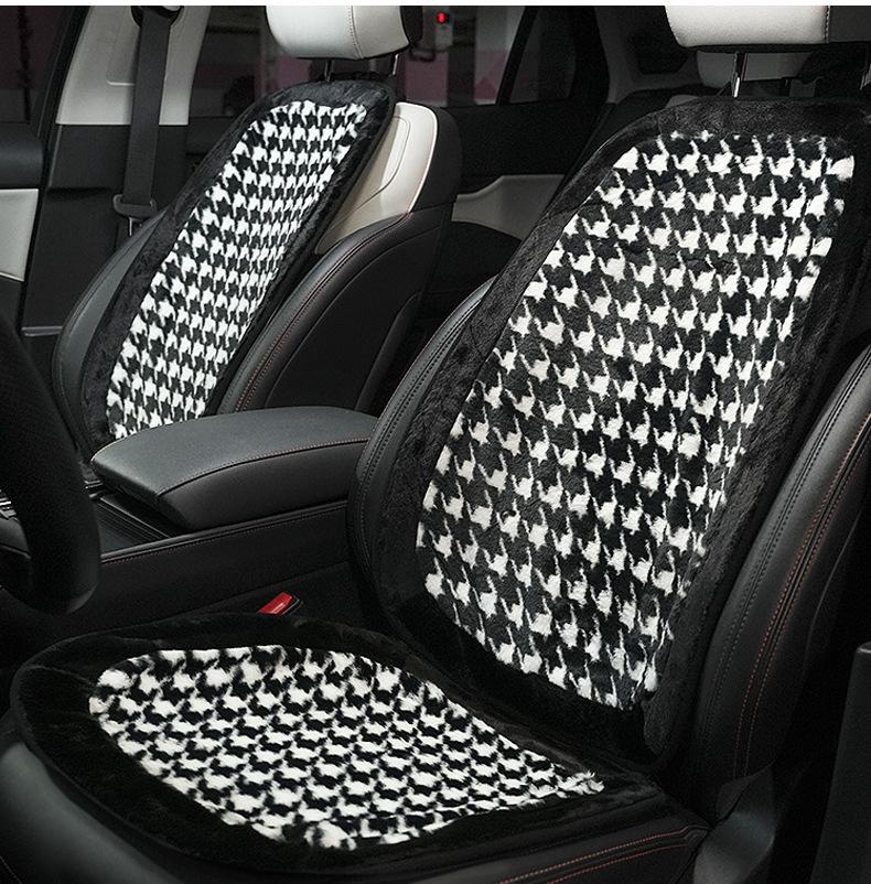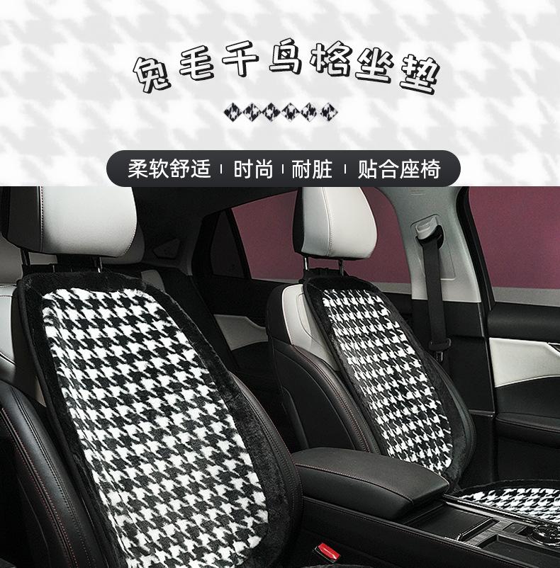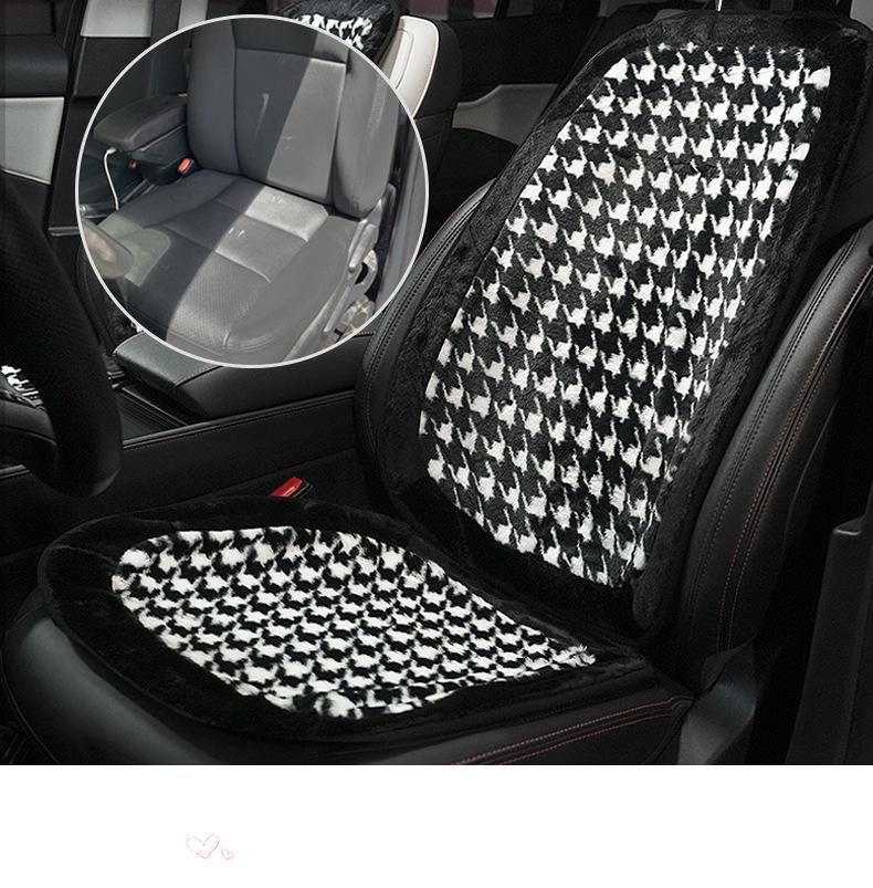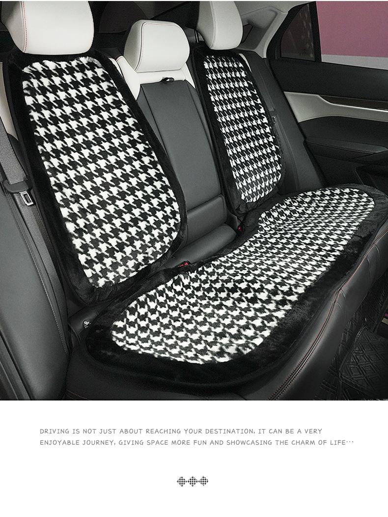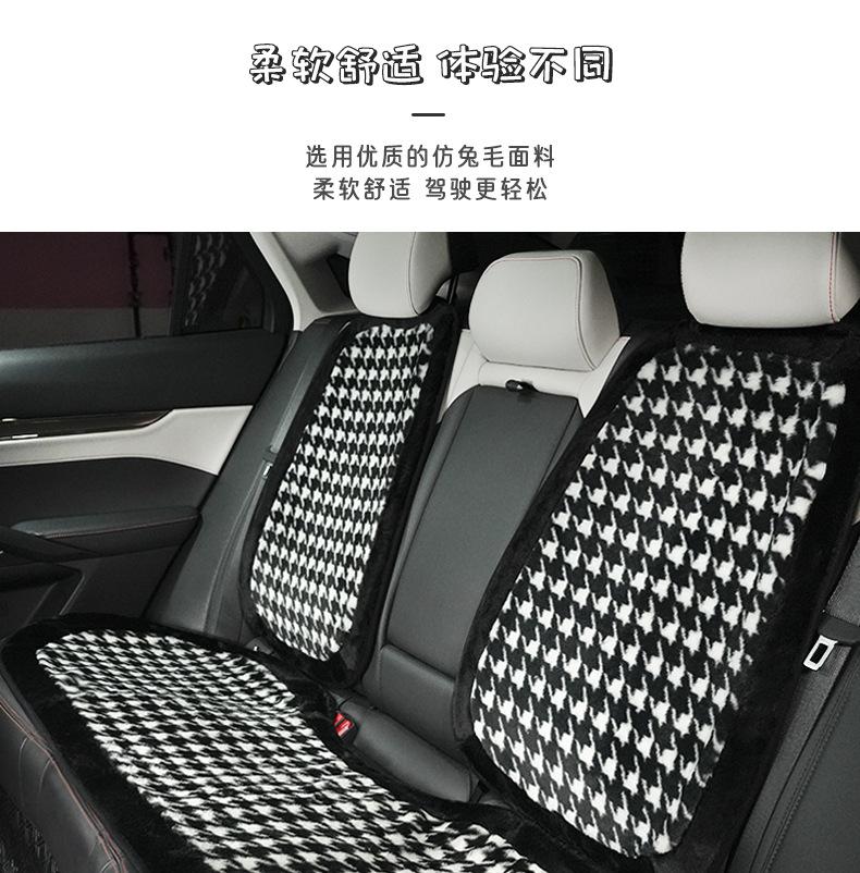 Cojín cálido para asiento de coche de otoño e invierno, cojín para asiento de coche de imitación de piel de conejo, borde negro de pata de gallo, cómodo cojín de felpa para asiento de coche