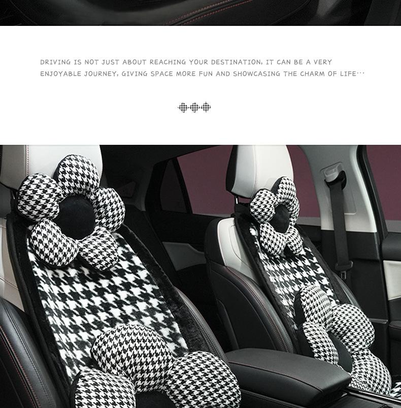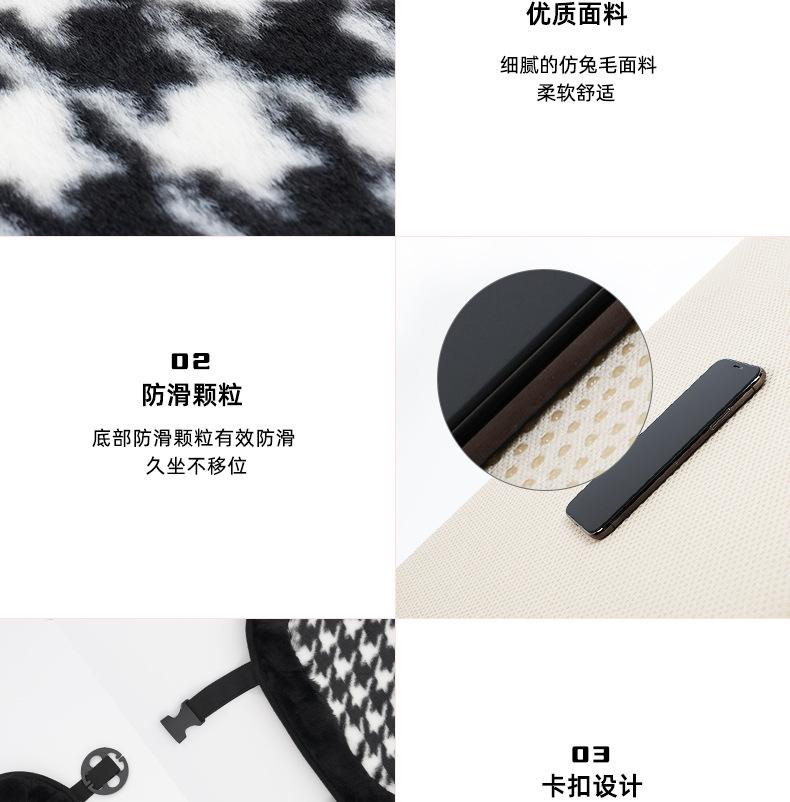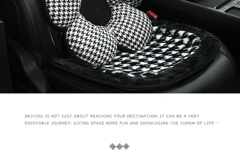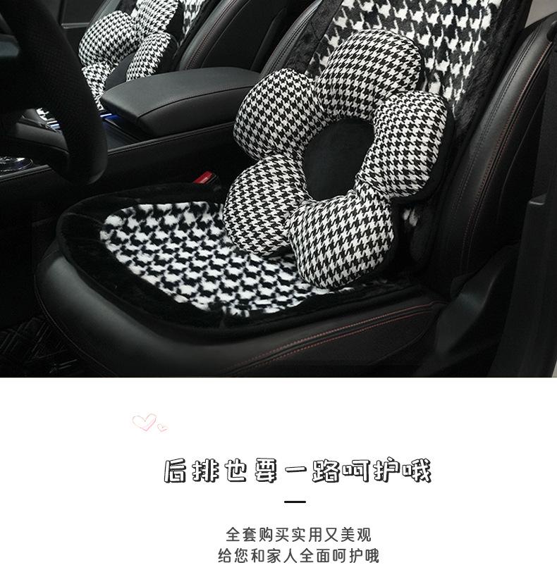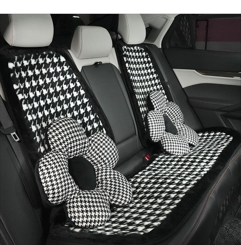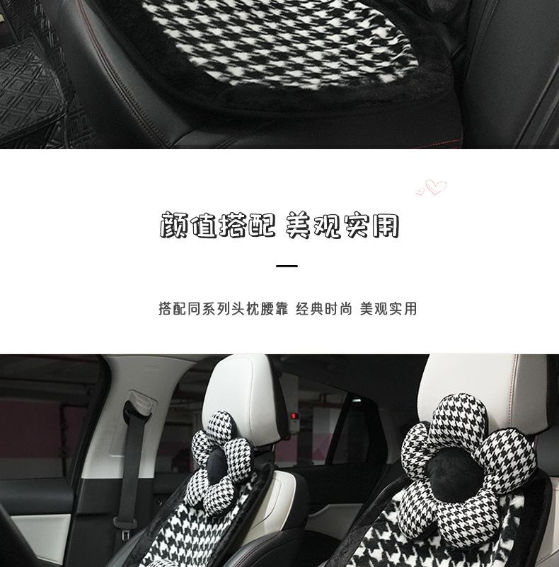 Cojín cálido para asiento de coche de otoño e invierno, cojín para asiento de coche de imitación de piel de conejo, borde negro de pata de gallo, cómodo cojín de felpa para asiento de coche