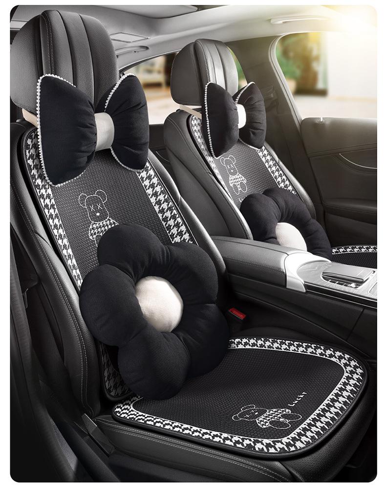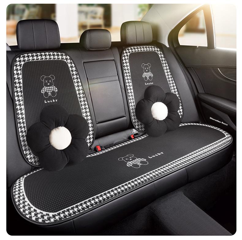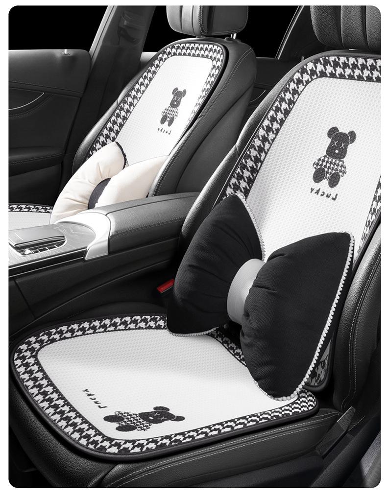 One houndstooth bear square pad, One houndstooth bear backrest, One in the back of the houndstooth bear., Houn...