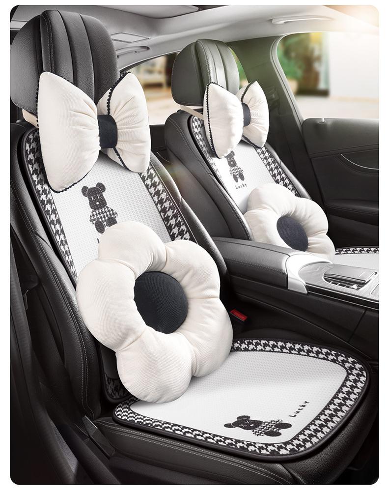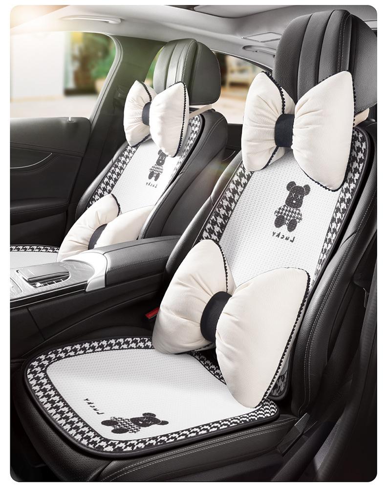 Cojín de asiento de coche para las cuatro estaciones, universal, de verano, fresco, ventilado y transpirable, de seda de hielo simple para mujer, de una sola pieza