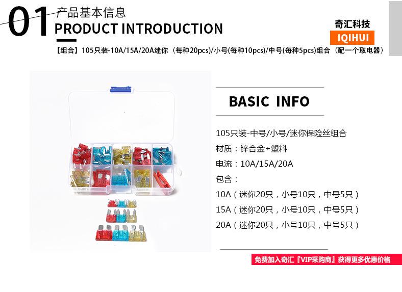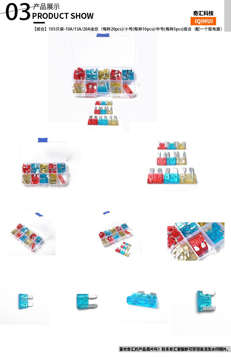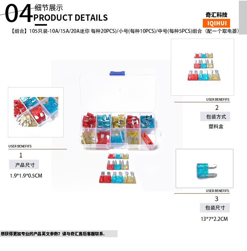 Compra Fusible mini, pequeño y mediano más vendido para aparatos eléctricos de fibra de vidrio/15 A/20 A, juego de 105 piezas al por mayor en Joom.pro