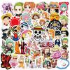 50 hojas de pegatinas de grafiti de anime con forma de sombrero de paja sangriento para equipaje, cuaderno, guitarra y coche.