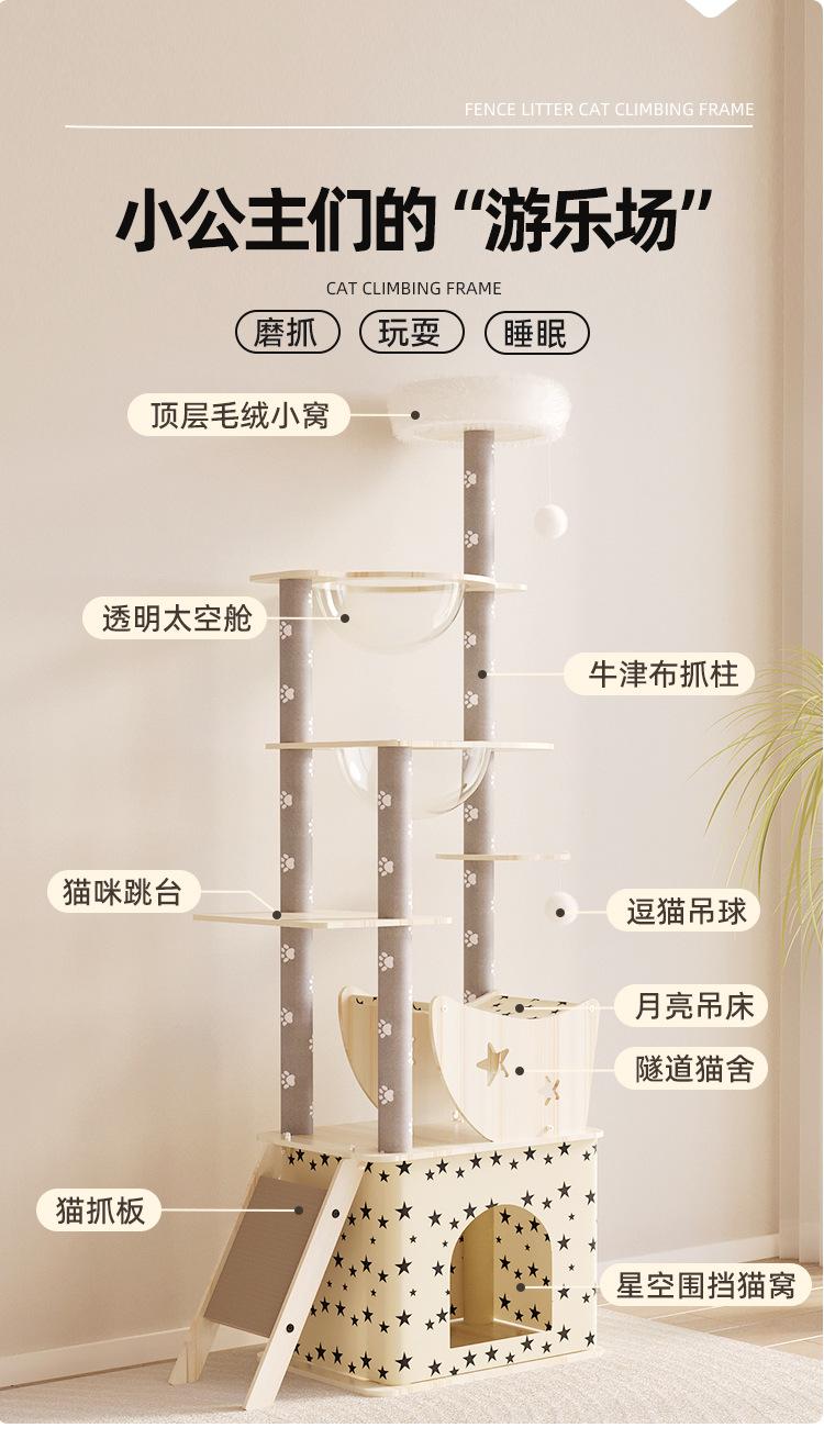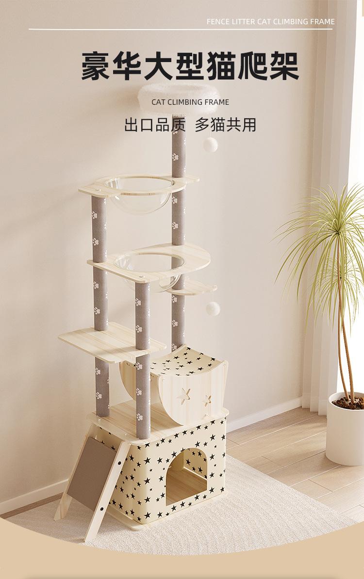 Rascador para Gatos, Nido para Gatos, Árbol para Gatos, Rascador Integrado de Lujo de Madera Grande Multicapa, Sala de Partos Grande, Estante para Gatos Cápsula Espacial
