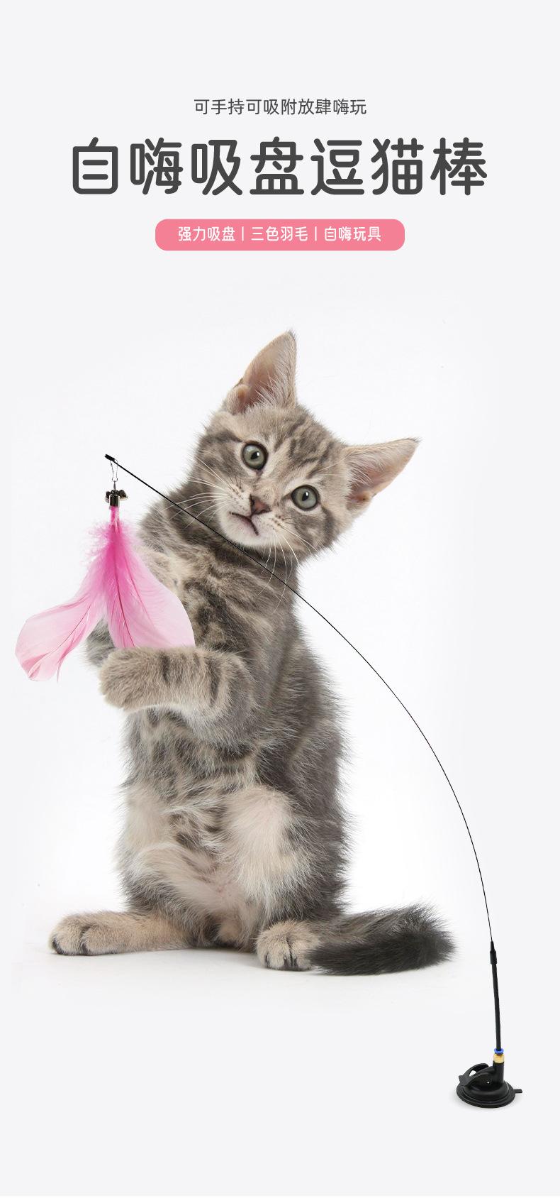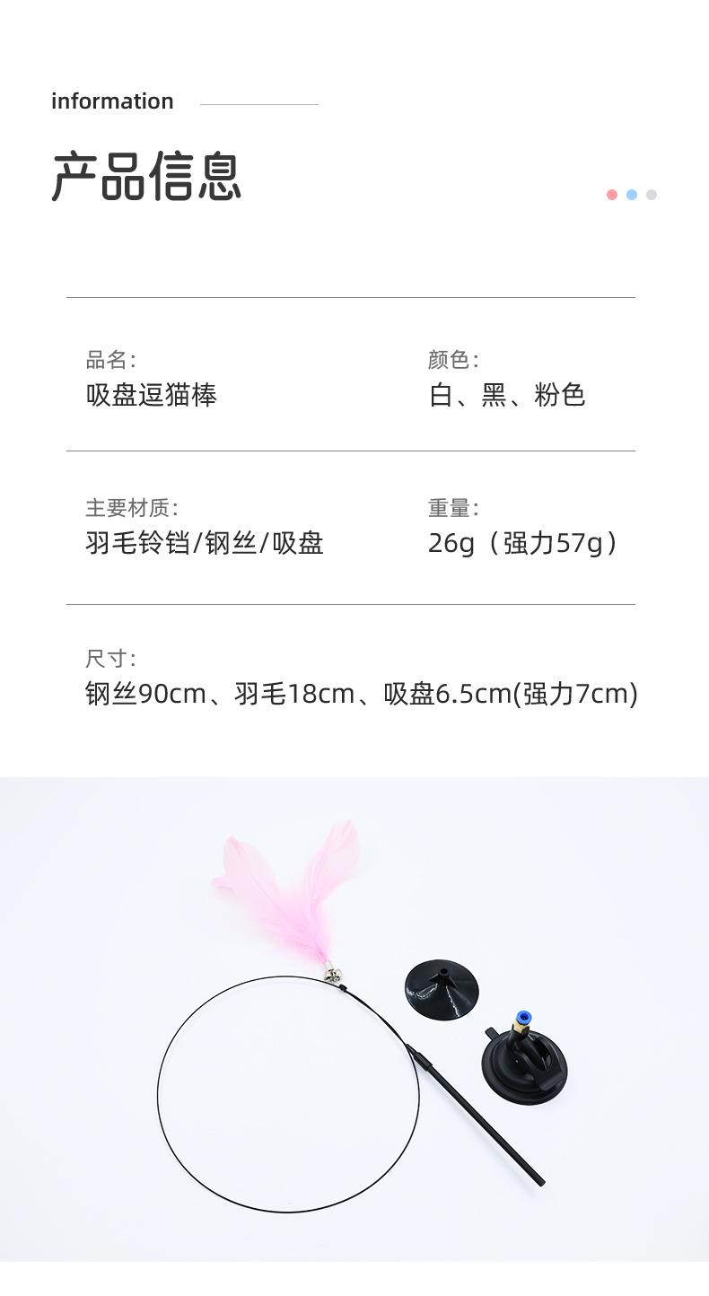 Suction cup cat teasing stick white, Suction cup cat funny stick black, Suction cup cat teasing stick pink, Po...