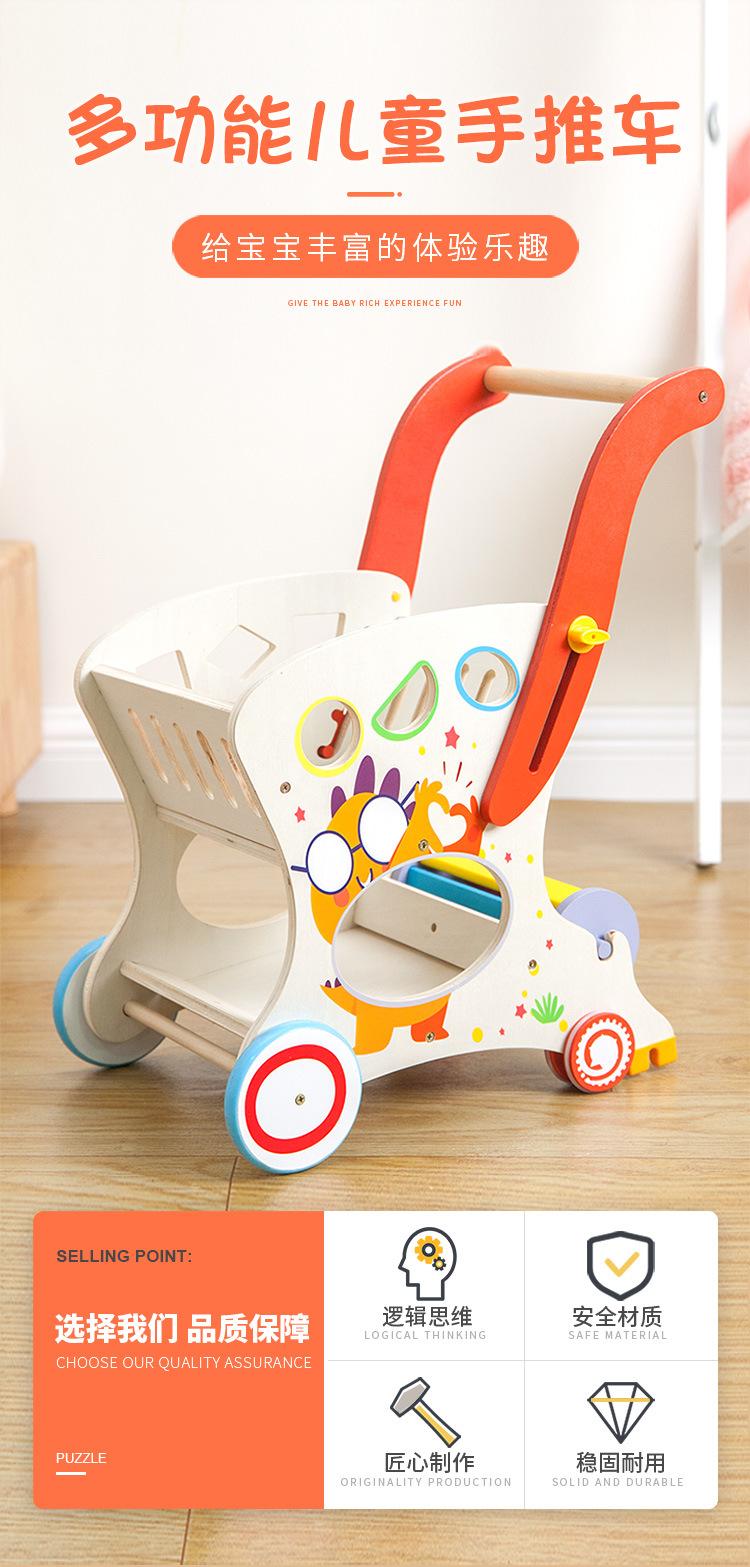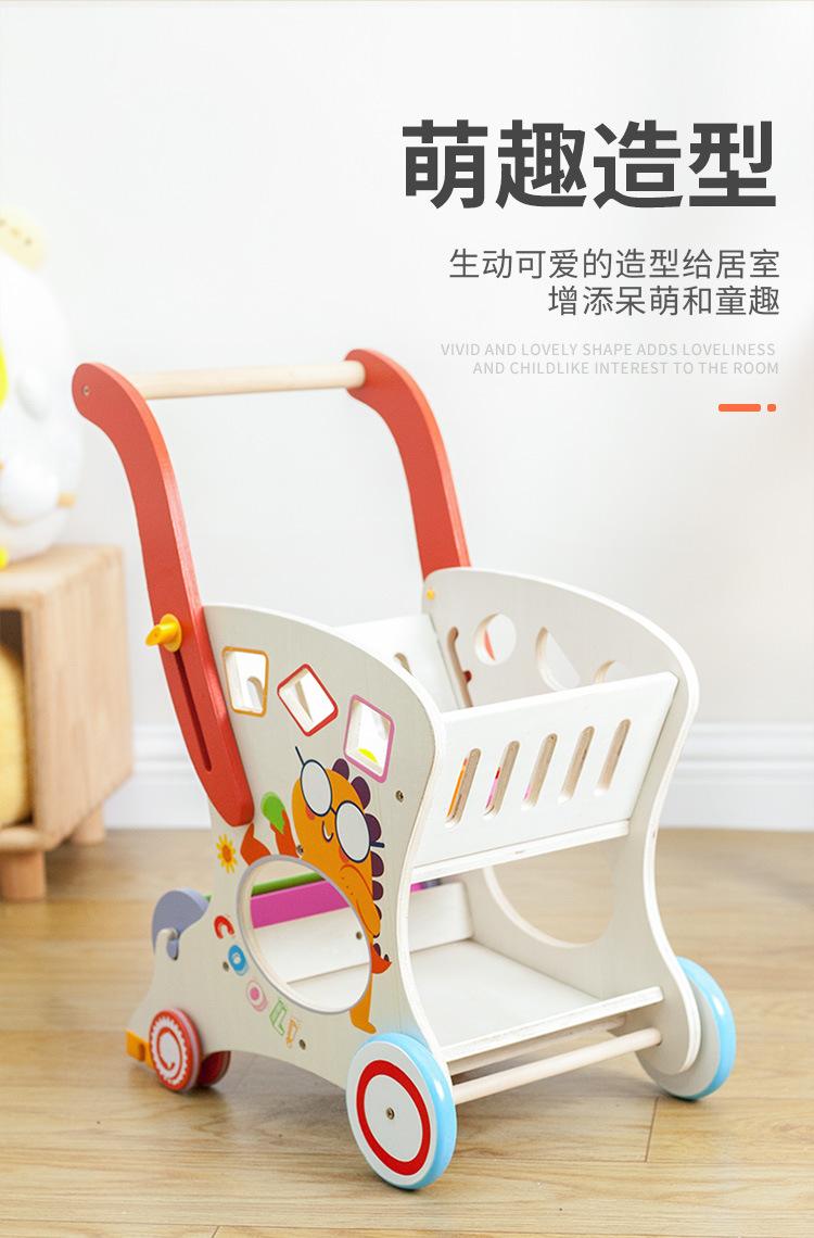 Carrito de madera para niños pequeños antivuelco, carrito de compras de supermercado de simulación para niños, almacenamiento de juguetes para casa de juegos