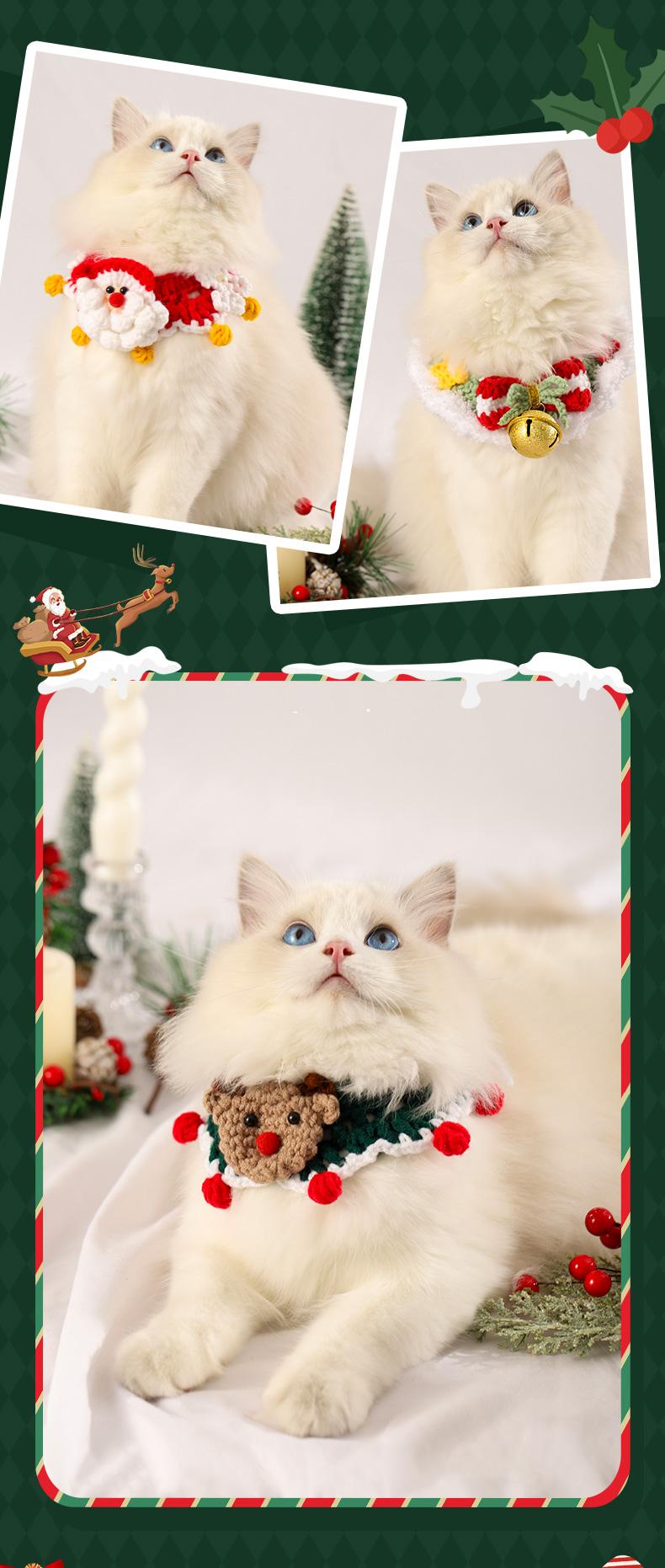 [Nombre del producto]: Collar Serie Navideña HOOPET - (Sorpresa Navideña/Ciervo Afortunado/Copo de Nieve Papá Noel) (XS/S/M/L)/HOOPET (Bufanda de Cuello de Ganchillo de Papá Noel/Bufanda de Cuello de Ganchillo de Alce) (S/M/L)/ Bufanda Navideña con Borde de Felpa HOOPET (cabeza de anciano/alce) (S/M)