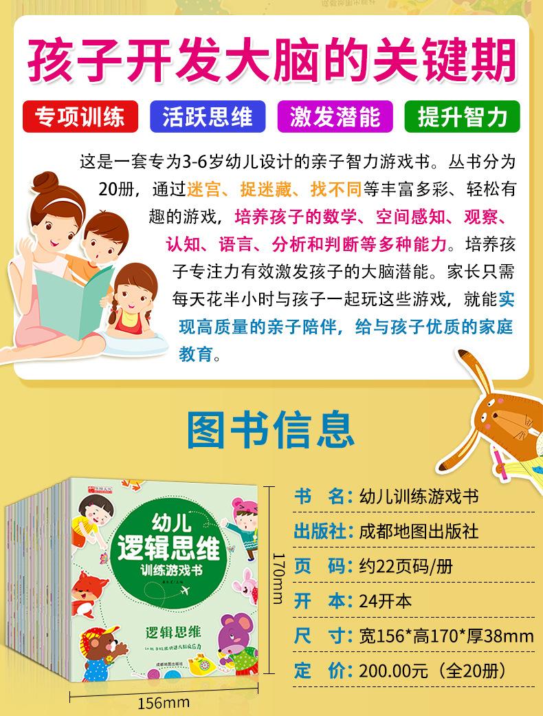 Libro de juegos de entrenamiento del pensamiento lógico para niños, entrenamiento de concentración para niños, desarrollo de todo el cerebro, libro ilustrado sobre el cabello, 20 volúmenes