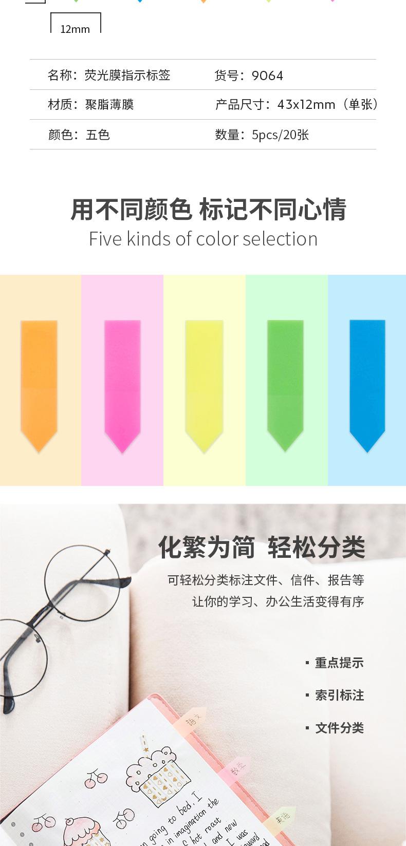 Deli 9060 serie bloc de notas clasificador barra indicadora etiqueta índice Marca etiqueta de clasificación por color indicador