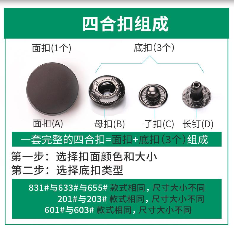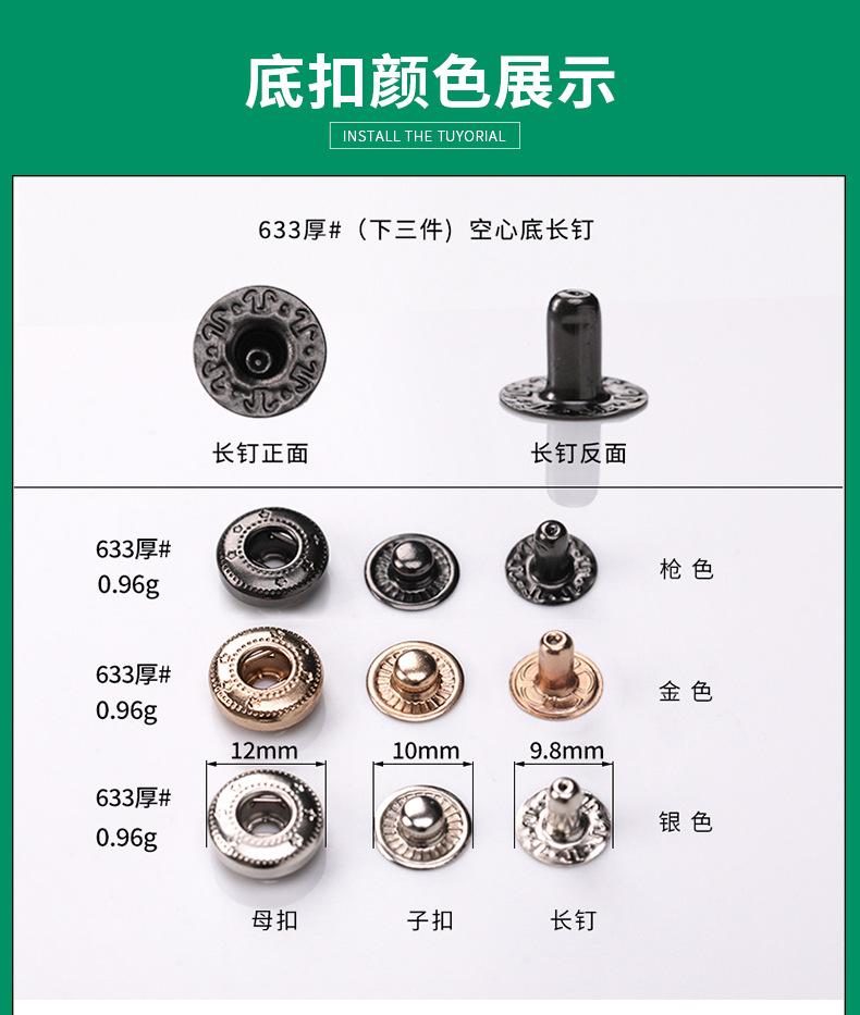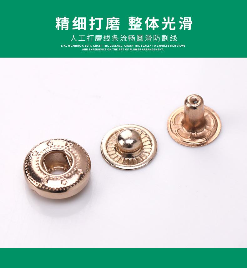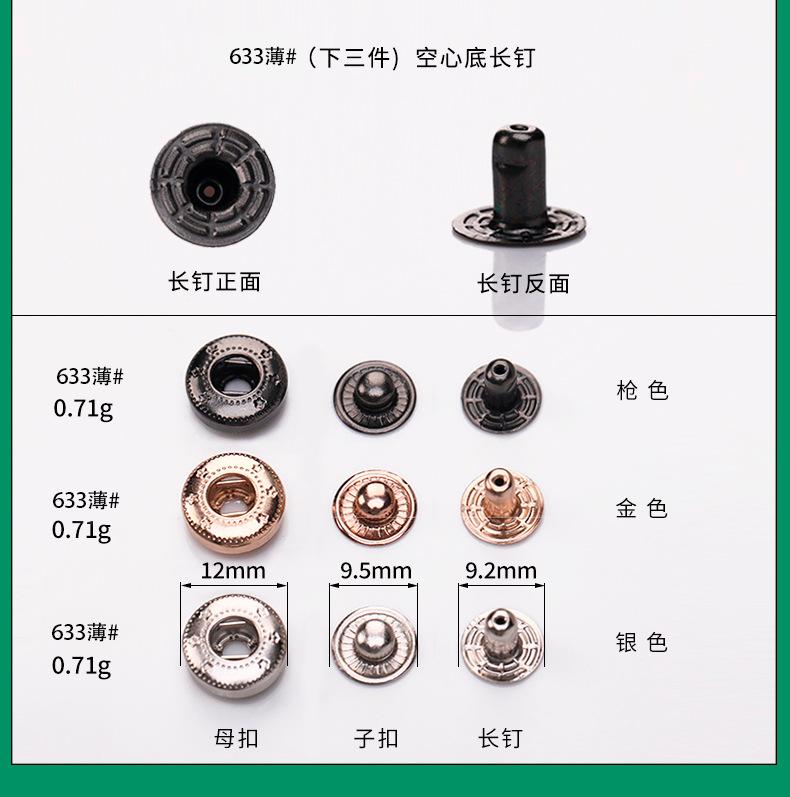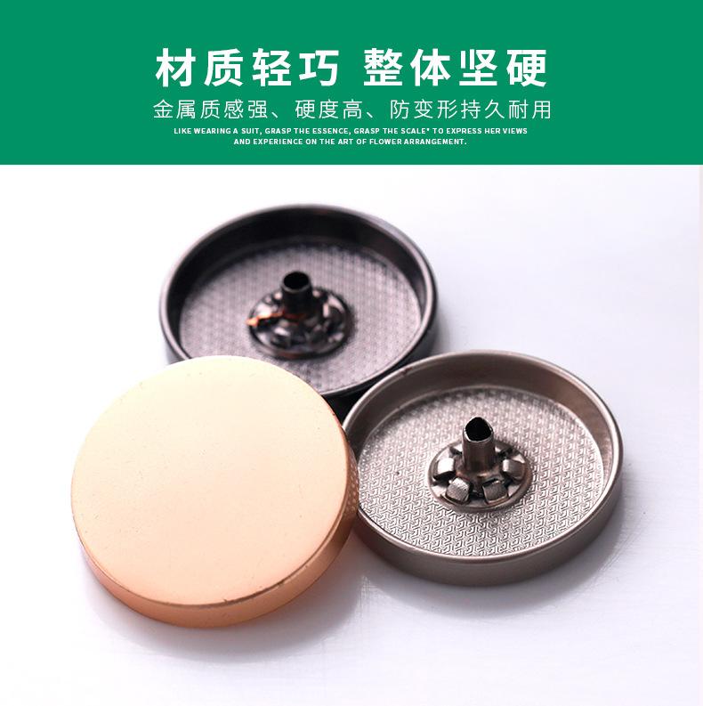 633 traje de chaqueta de plumas con hebilla de cuatro articulaciones plana y gruesa, hebilla oculta de metal, botón a presión, botón femenino