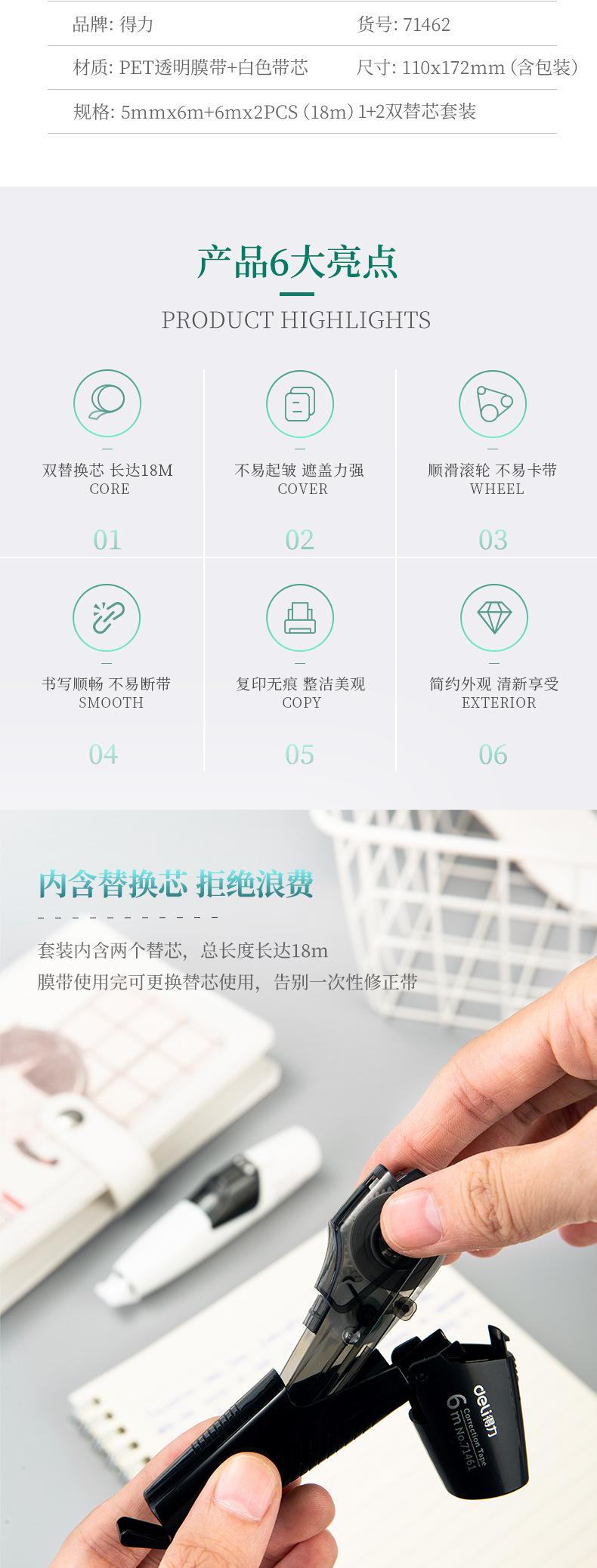 Cinta correctora Deli bolígrafo multiusos de gran capacidad cinta correctora recargable repuesto estudiante oficina traje de cinta correctora
