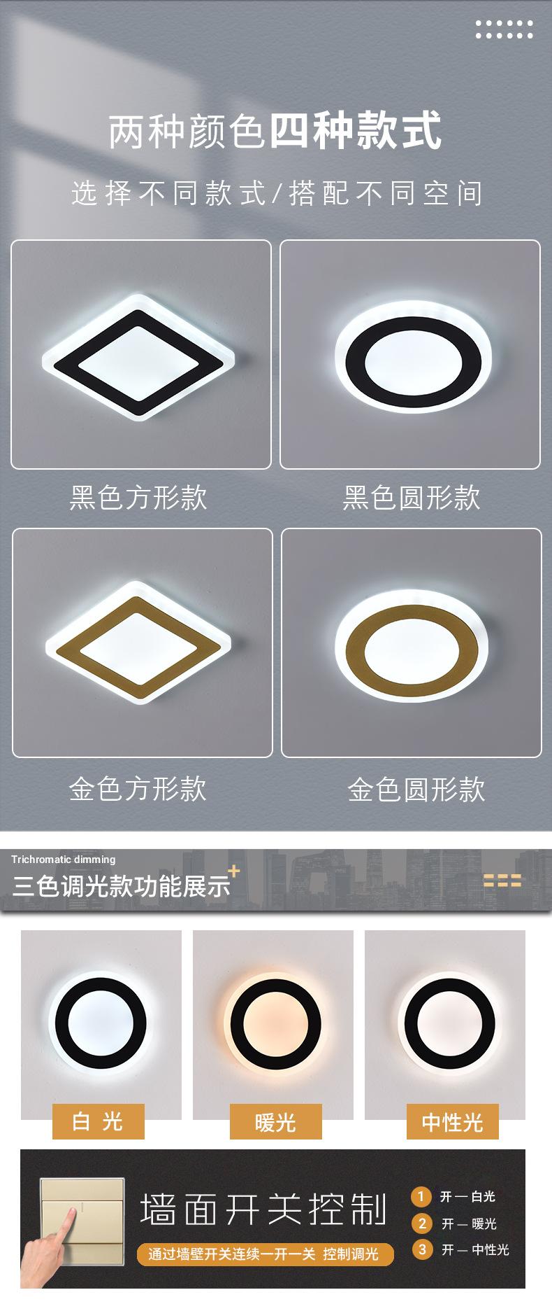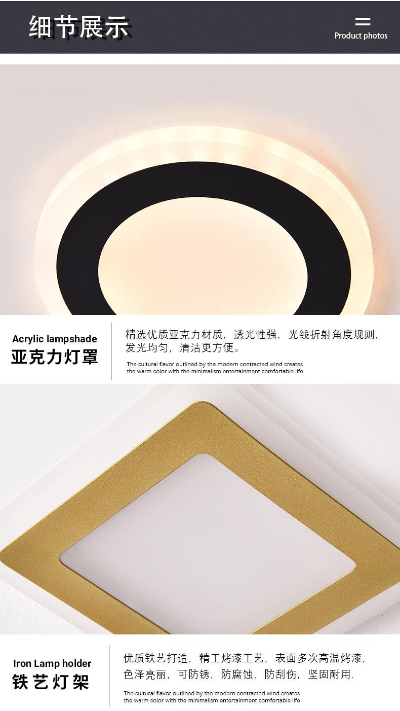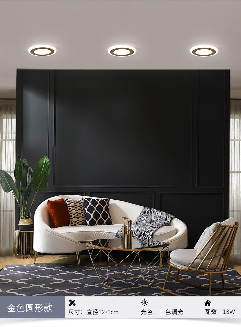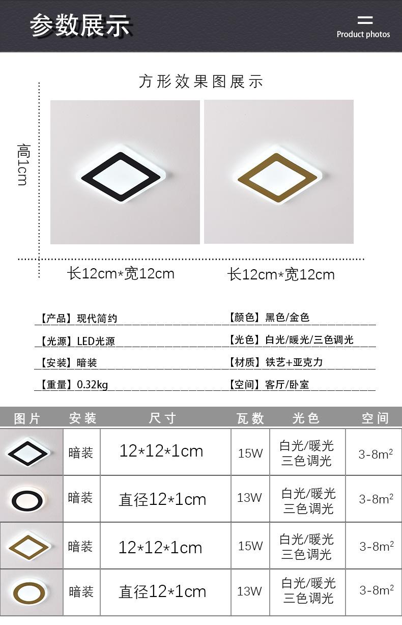 Lámpara de Techo Cuadrada Nórdica Simple Empotrada para Pasillo de Tres Colores Suministro Directo Transfronterizo Sala de Estar Dormitorio Atenuación Techo para el Hogar