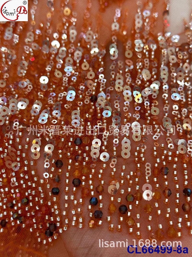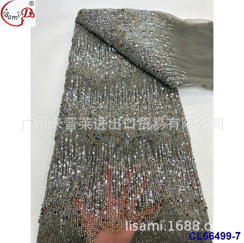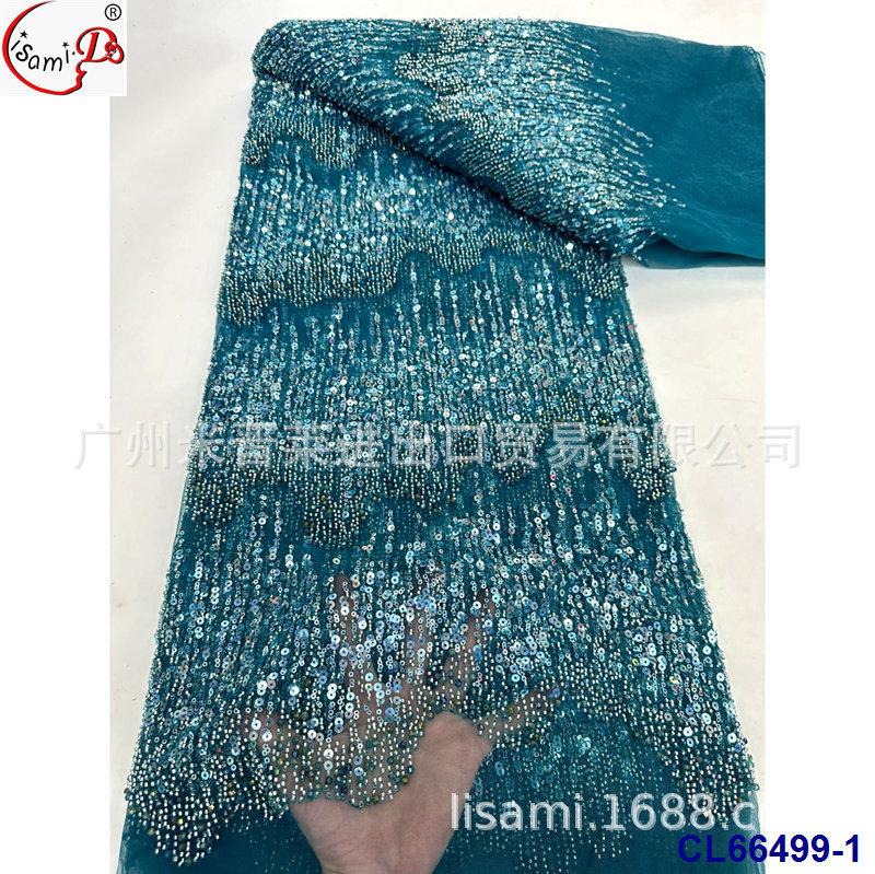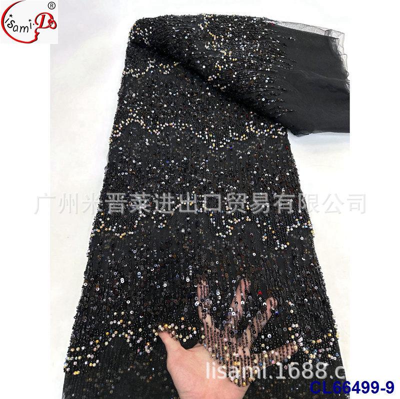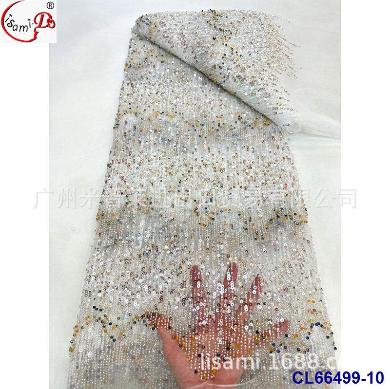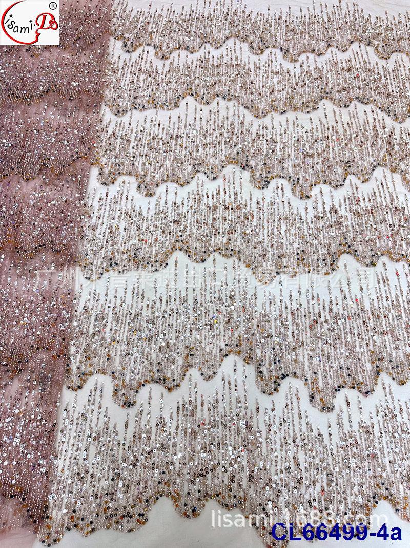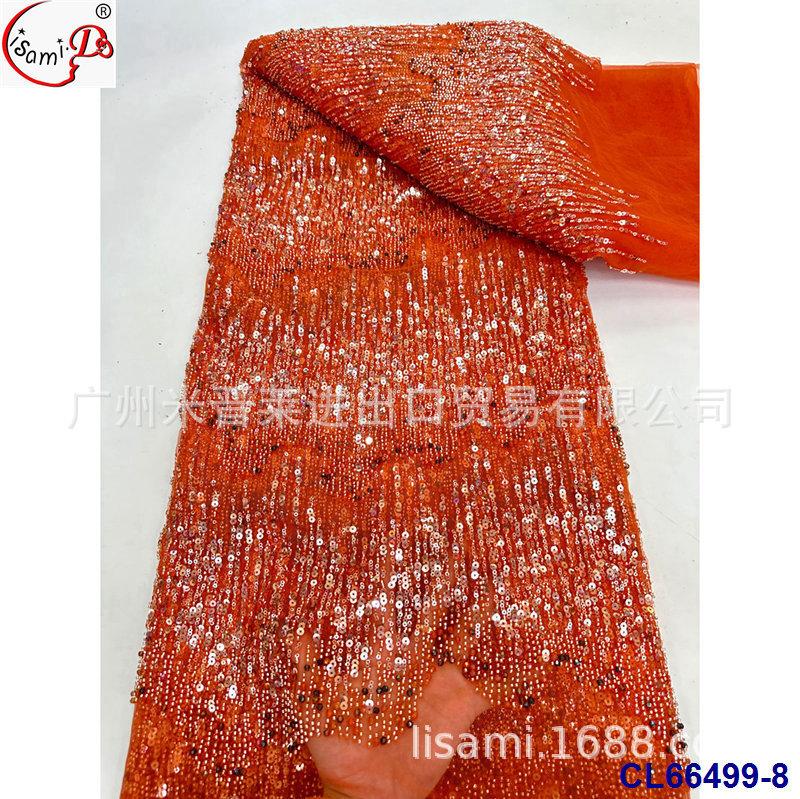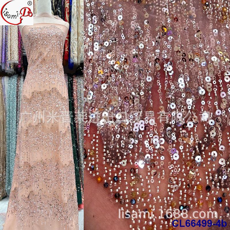 Vestido de novia francés versión completa bordado tela de encaje con cuentas finas tela de encaje con lentejuelas para novia