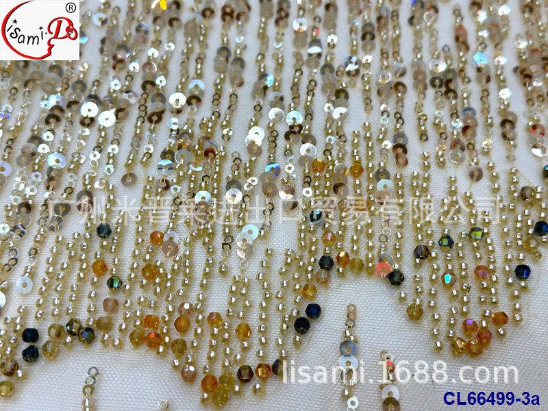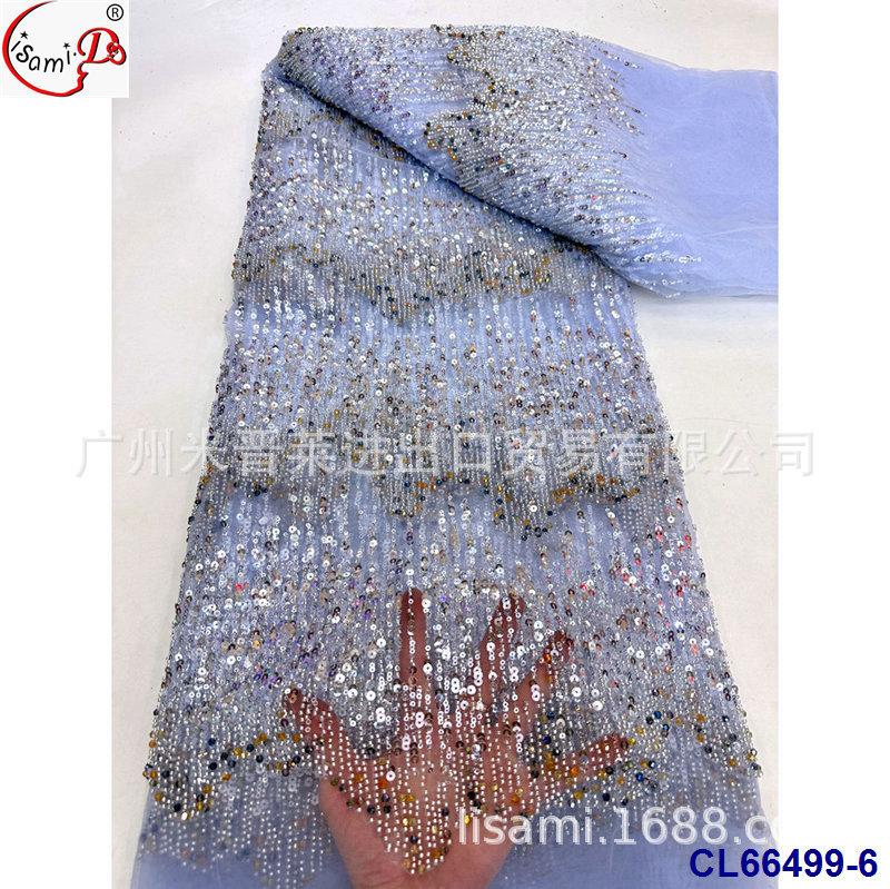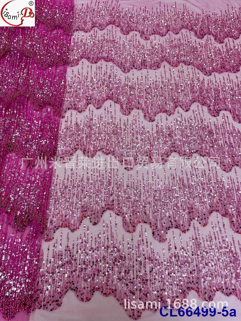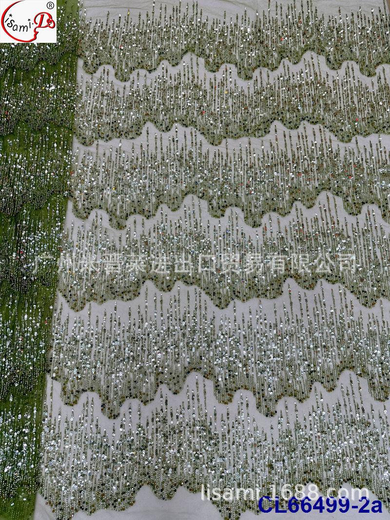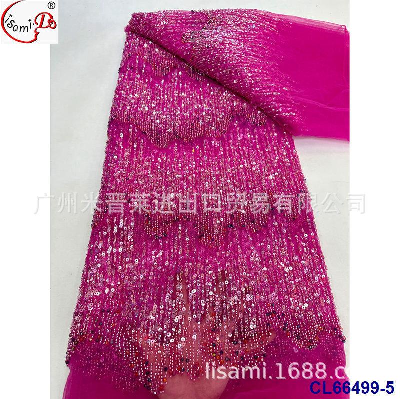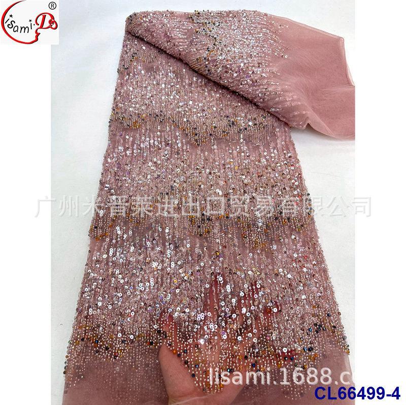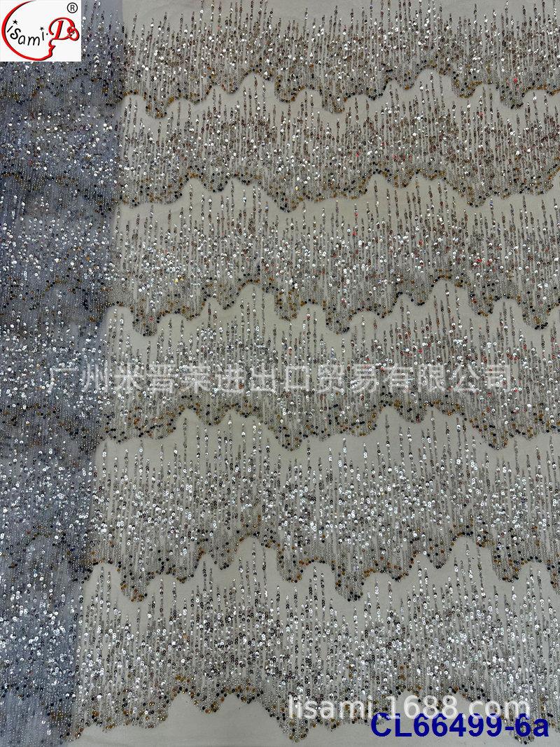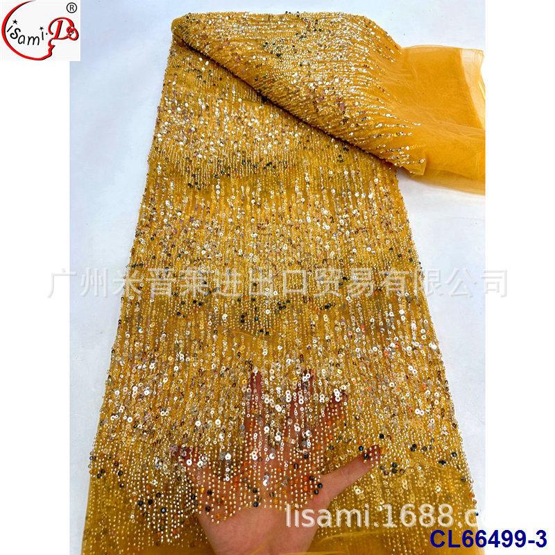 Vestido de novia francés versión completa bordado tela de encaje con cuentas finas tela de encaje con lentejuelas para novia