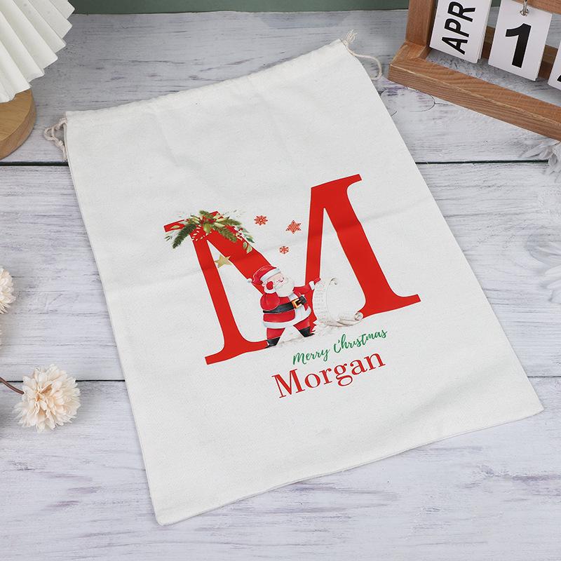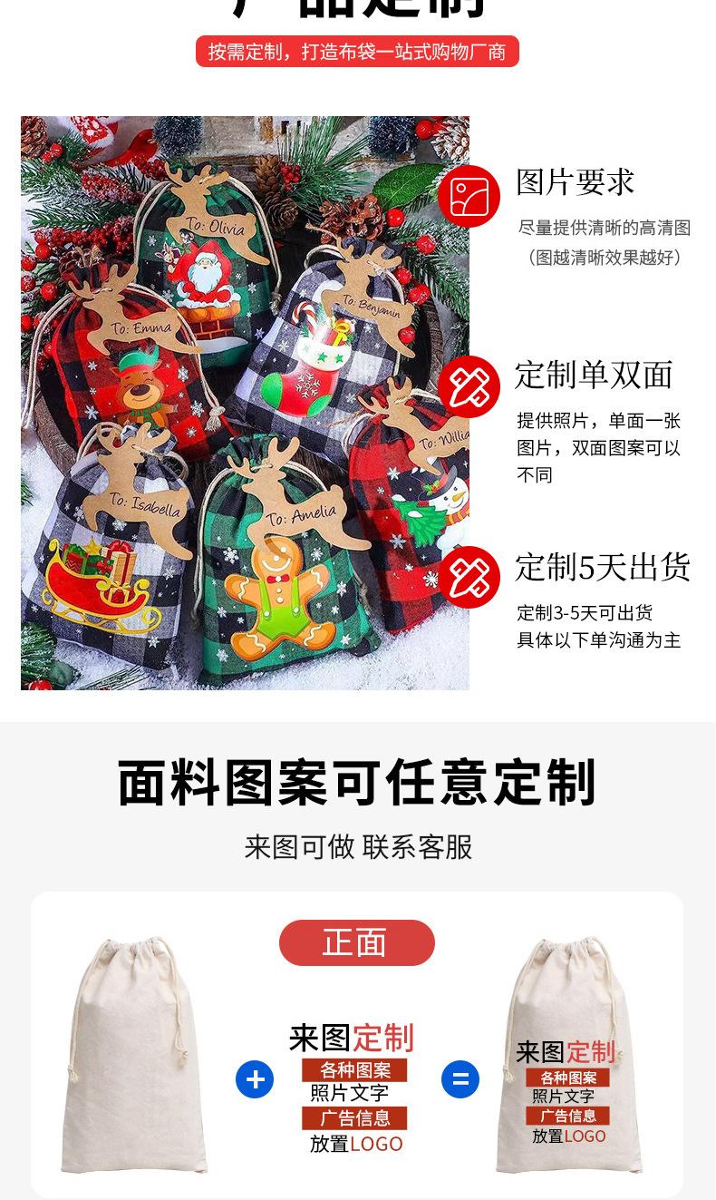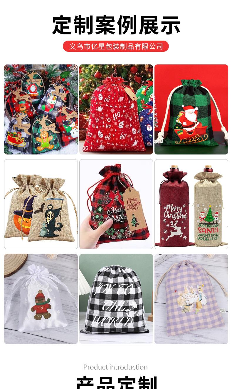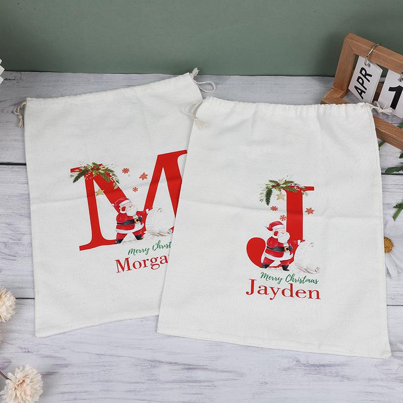 Bolsa de Algodón Popular Navideña con Cordón Letra Cordón Regalo Bolsa de Lona Fabricante de Bolsas de Cordón Navideñas Venta al por Mayor