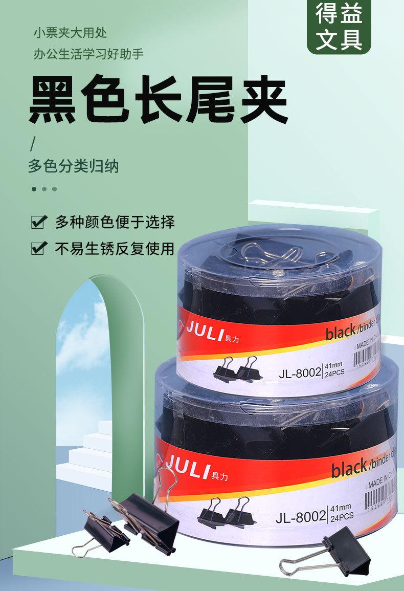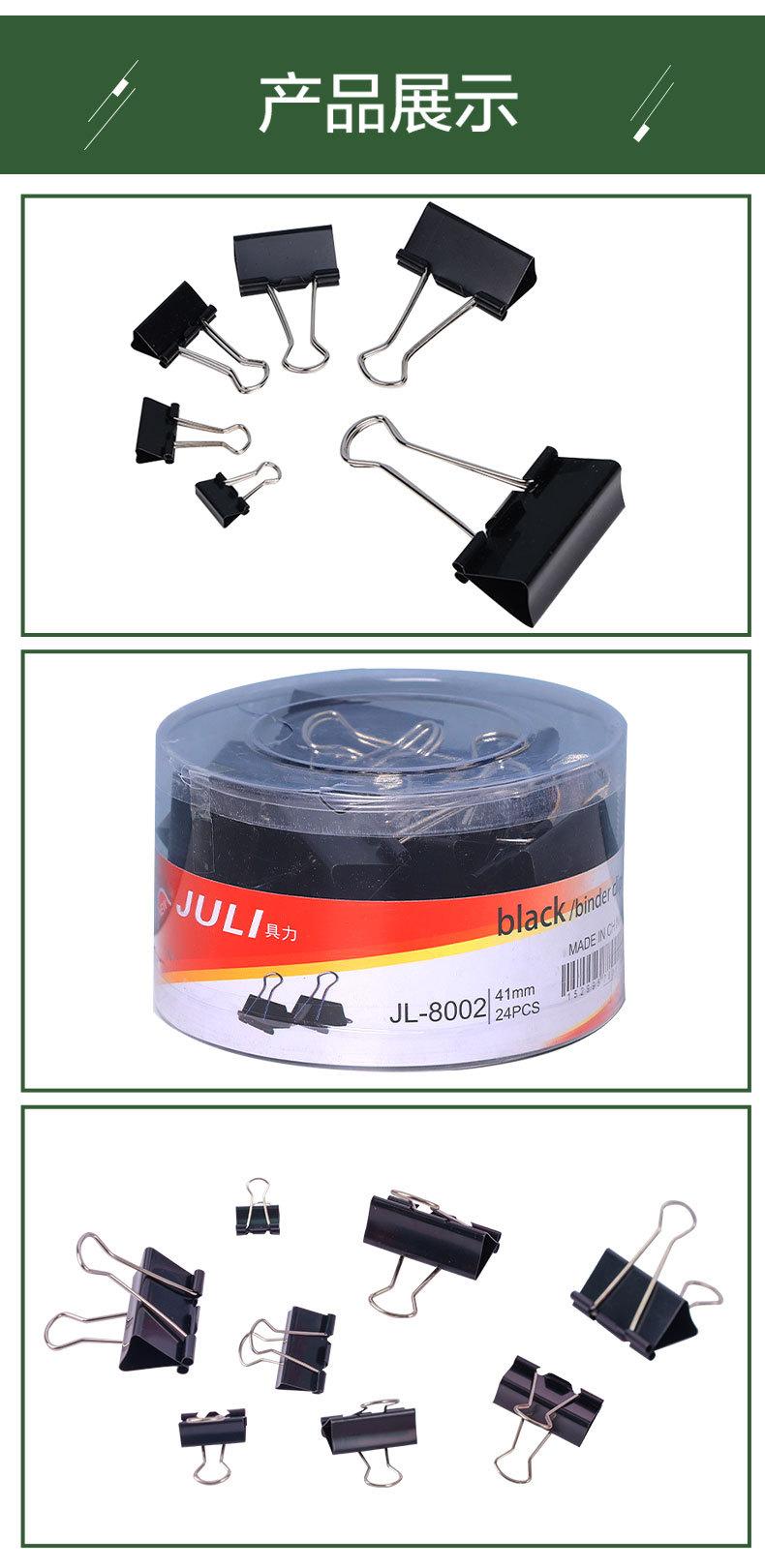 Suministro de fábrica, clip de cola larga negro de 41 mm, clip de cola de milano, clip de metal grande para billetes, clip de acero para suministros de oficina
