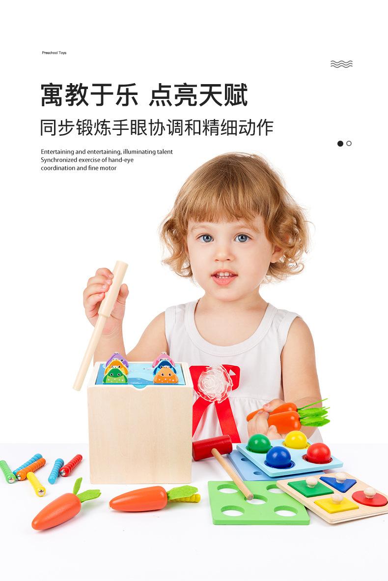 Juguete de madera para niños de Amazon, mesa de golpeo Montessori para bebés, rompecabezas de educación temprana, tablero para rascar, atrapar gusanos, tirar rábanos y pescar.