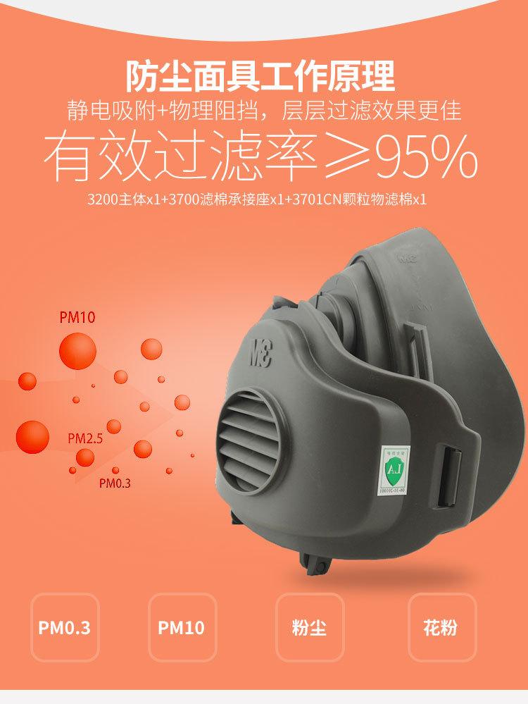 Mascarilla antipolvo 3M3200, transpirable, lavable y a prueba de polvo, con filtro 3701 de algodón.
